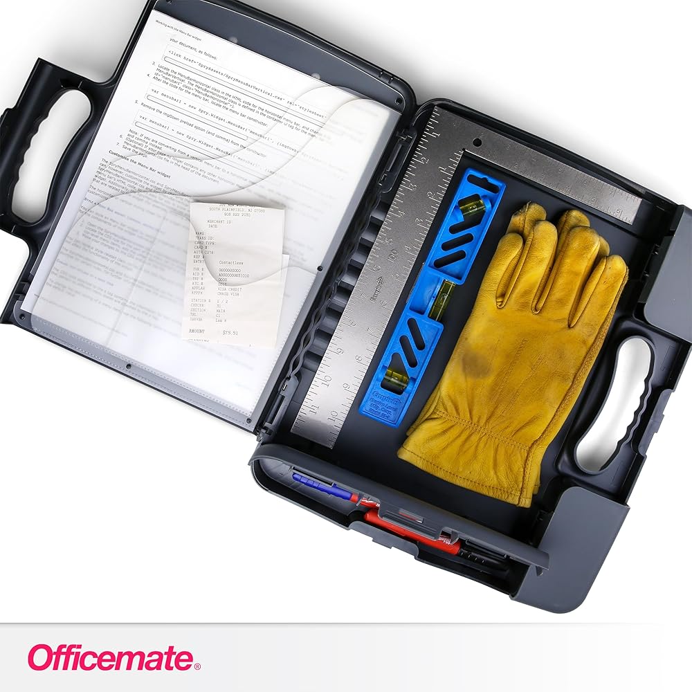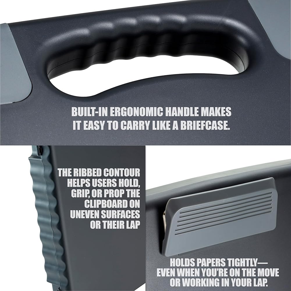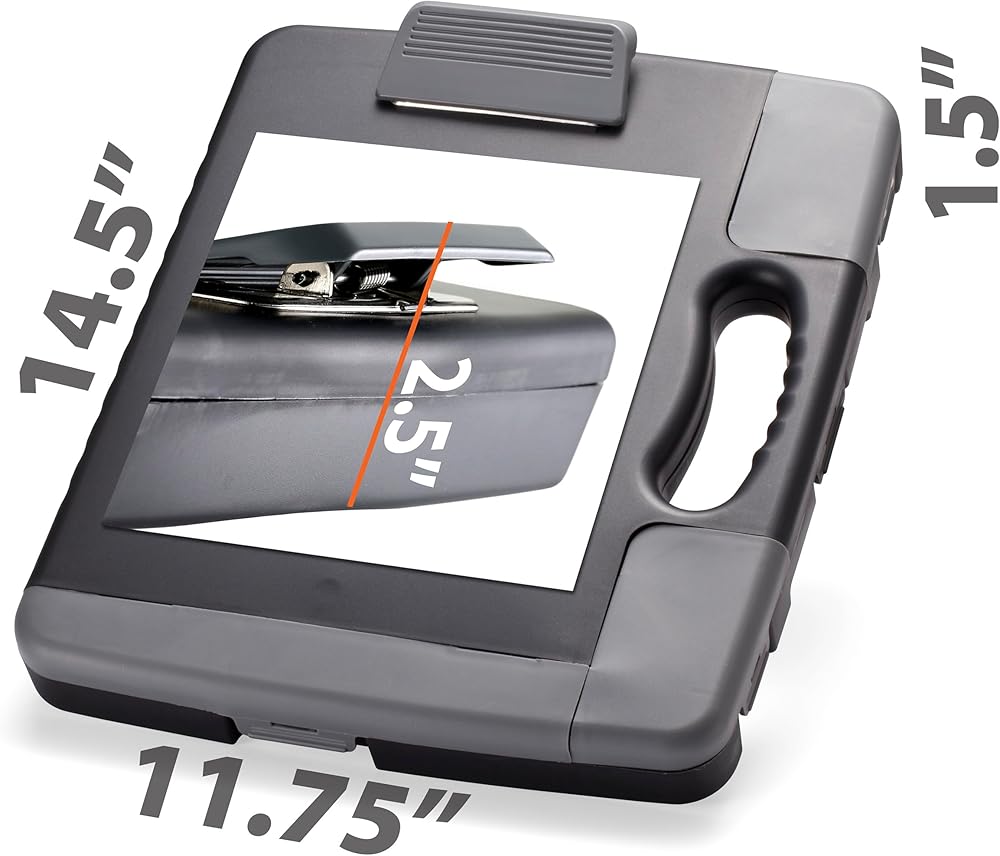 Officemate Portable Clipboard Storage Plastic Case for A4 Sizes, Charcoal (83301),11-3/4"w x 1-1/2"d x 14-1/2"h