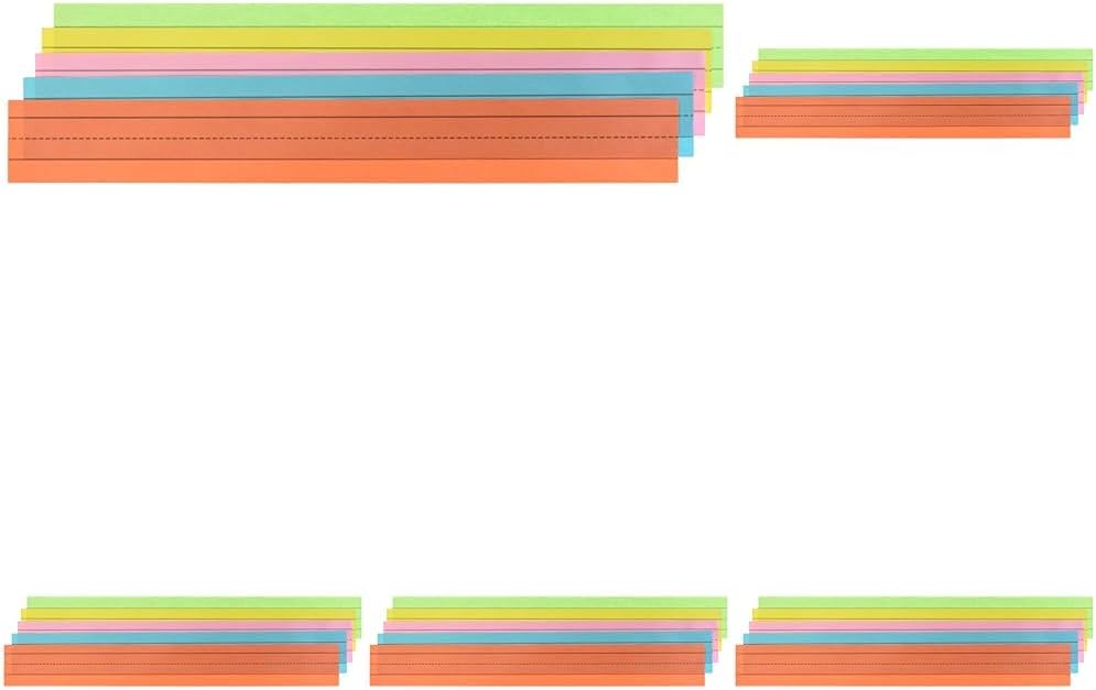 Rainbow Sentence Strips feature a 1-1/2 inch blue ruling, 3/4 inch dotted midline and 1 inch descender space. Colors include an assortment of blue, pink, canary, orange and green. Each paper strip measures 3 x 24 inches and has a 43 lb basis weight. Pack of 100.