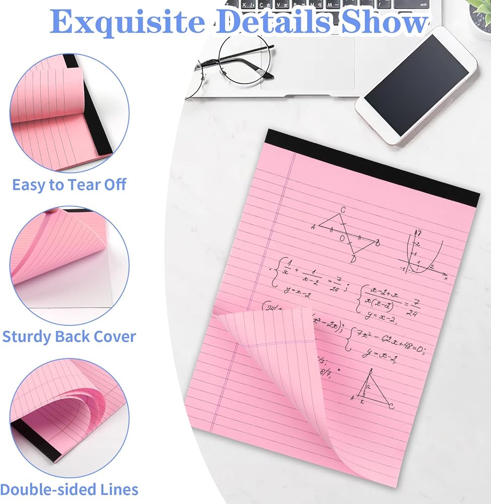 ✨【3 Pack Legal Pads】This product includes 3 packs legal pads with 30 pages, total in 90 pages, 8.5 * 11 inches in size. The spacing between horizontal lines is about 8.5mm.(Manual measurement, please allow a certain numerical error.) Sufficient quantity and adequate space, meet your study and work needs.