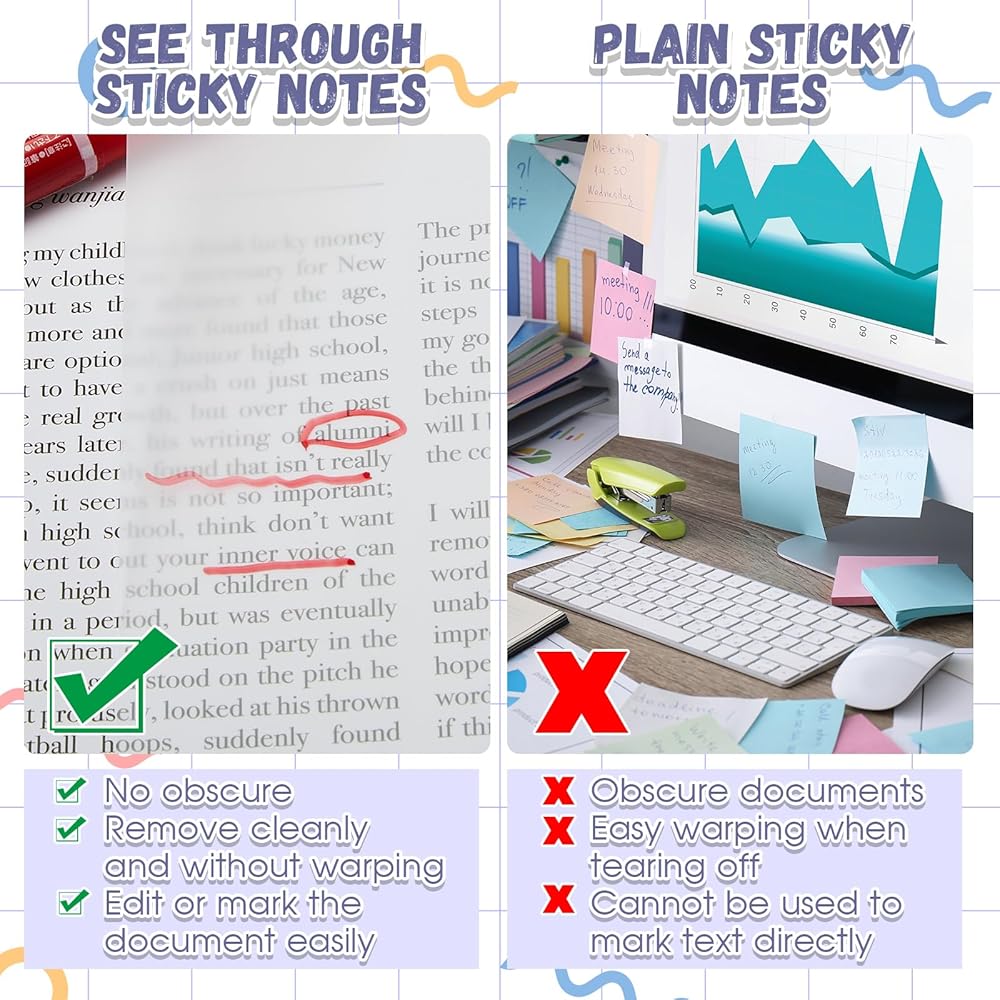 Wide Range of Uses: these translucent self stick notes are suitable for many places, it is recommended to paste on a flat surface, also can be applied in classrooms, offices, and even homes