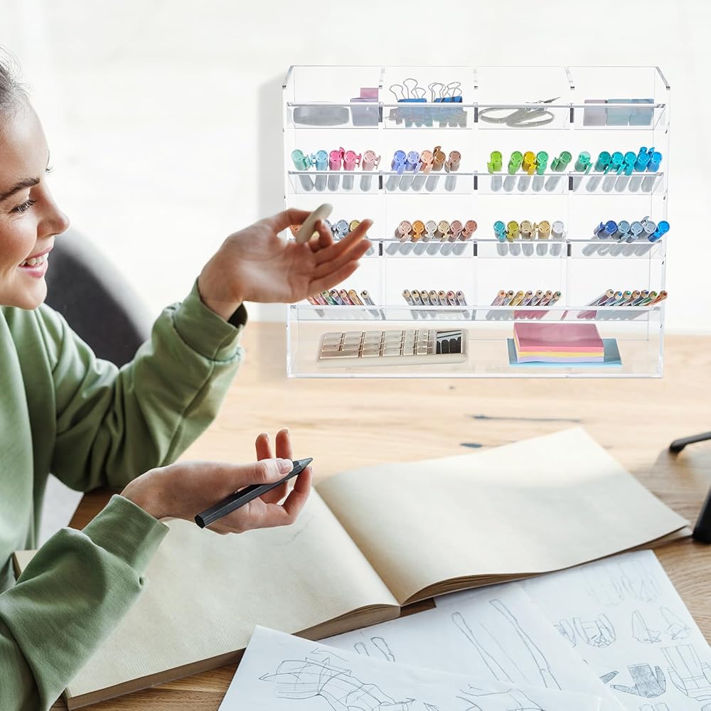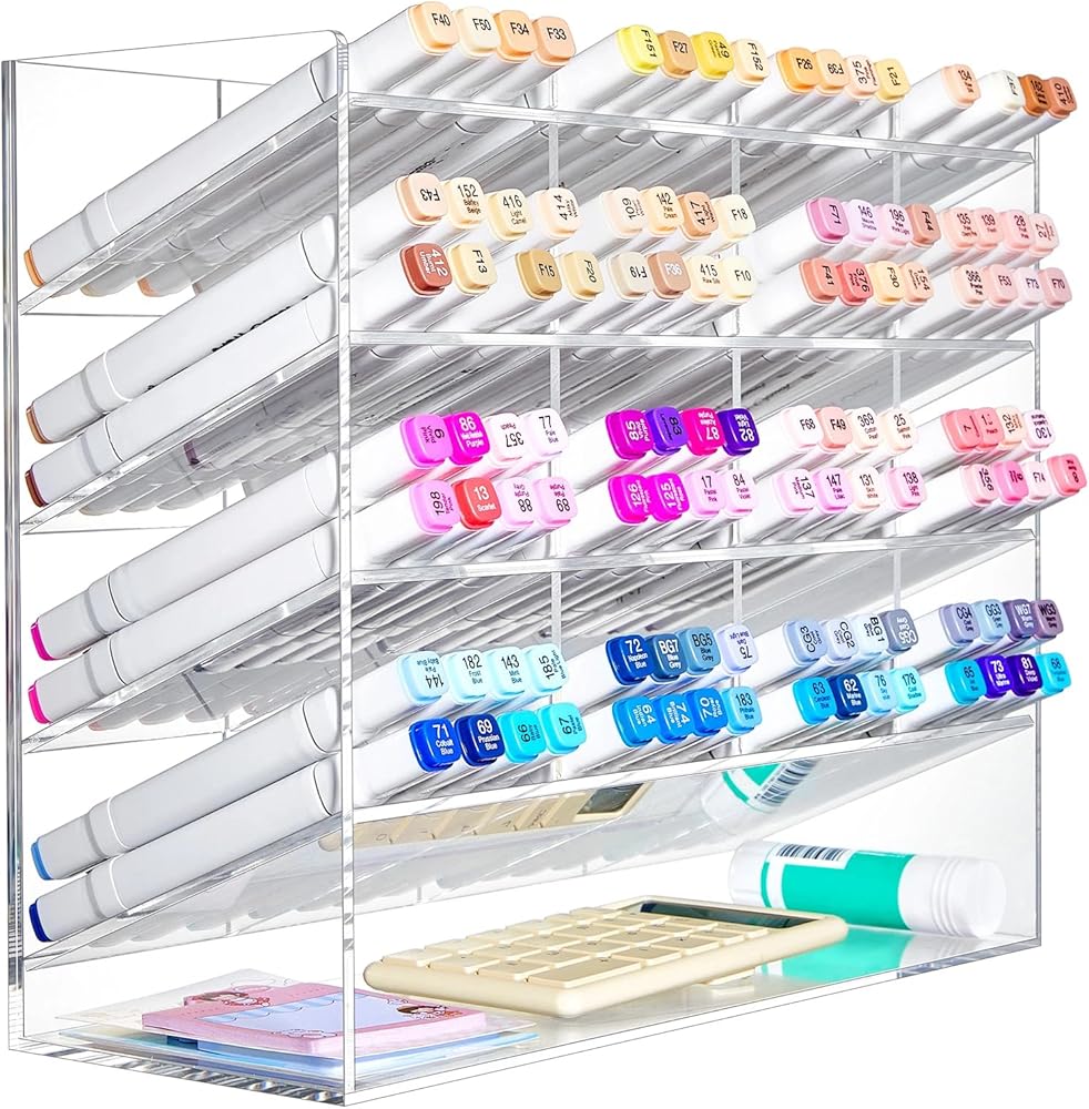 Space Saving Design: our acrylic vertical marker organizer is cleverly designed with a tilted compartment structure, providing increased usage space that effectively saves room; Enjoy the peace of mind with more secure and stable storage; With a total of 21 compartments, it's easy to sort, classify, and meet various storage needs