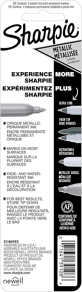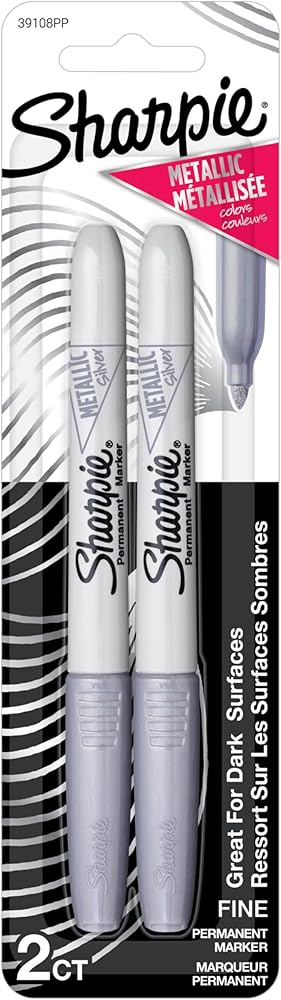 Sharpie Metallic Permanent Markers, Fine Point, Silver, 2 Count - For Black Paper or Dark Surfaces, Arts & Crafts, Posters