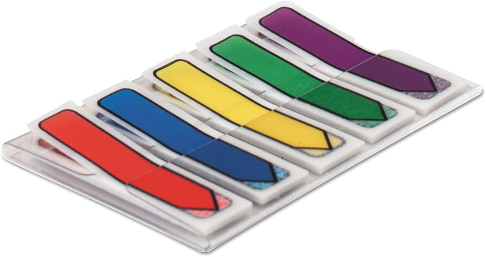 Post-it Arrow Flags, 0.47 in. x 1.7 in., One Dispenser With 100 -Count Assorted Primary Colors Sticky Tabs Per Dispenser, Removable Page Markers for Planners, Journals, and Calendars (100 Flags Total)