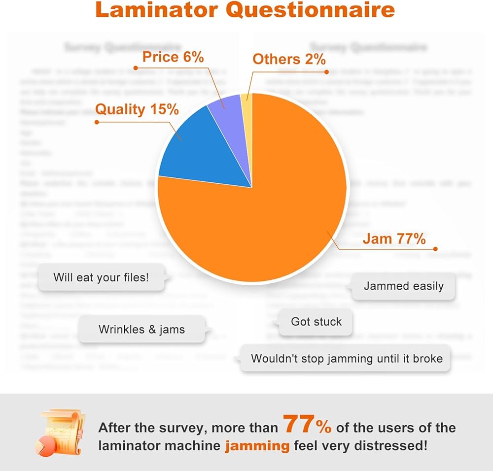 【100% Never Jam】 Paper jams are a common issue with laminate machines. The Bonsaii Home laminator features patented anti-jam technology that effectively prevents jams, safeguarding your items and ensuring optimal protection.
