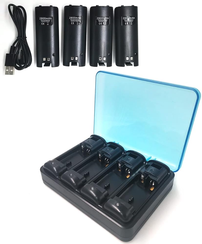 【Wii Remote Battery Pack Rechargeable】We are equipped with four batteries of a capacity of 2800mAh , they are replacements of the original batteries and can work for about 5 hours of a full charge .