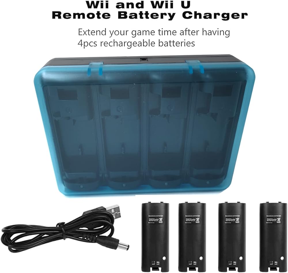 Tuboopy Battery Pack Rechargeable for Wii Remote Charging Station Wii Remote Battery Pack Charger for WII U Controller Black (4 Pcs Batteries+USB Cable+Charger Station)