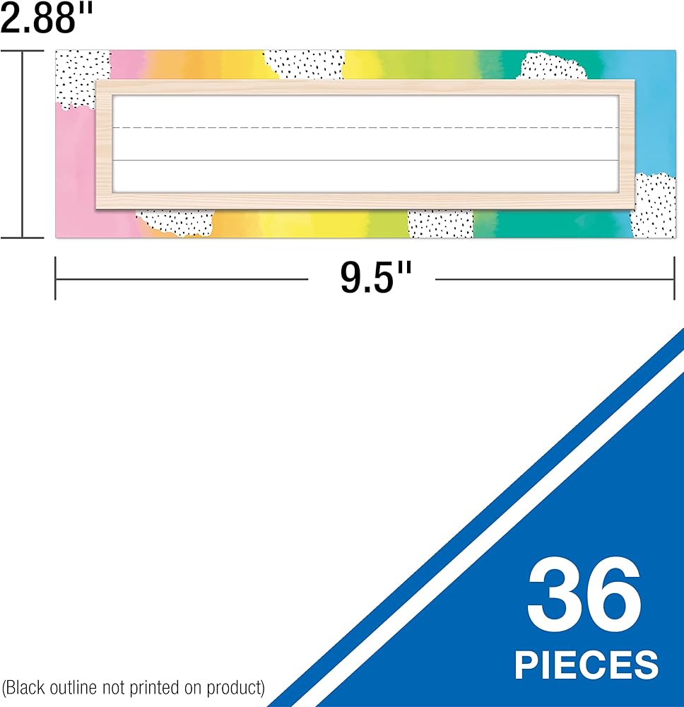 What's Included: The nameplate set features 36 nameplates to accommodate an entire classroom and more, each measuring about 9 ½” x 2.8”.