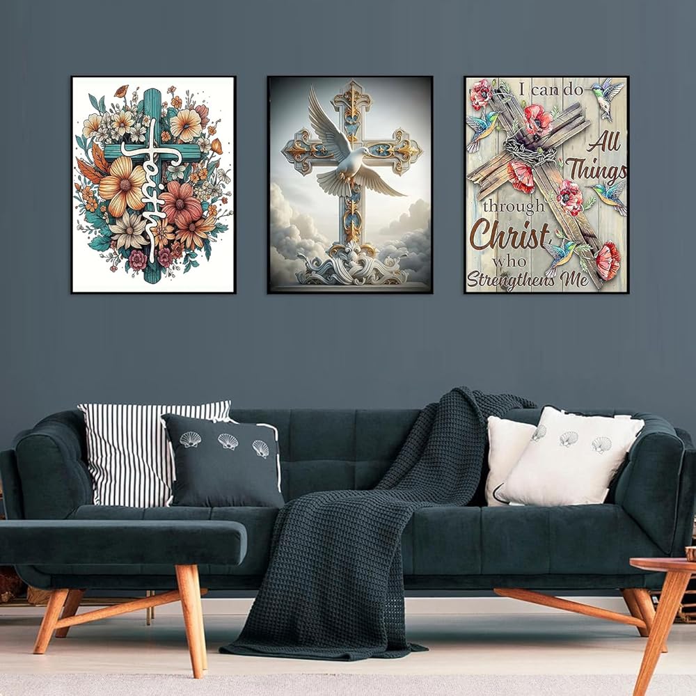 Axquilon Religious Diamond Art Kits for Adults - 3 Pack Cross Diamond Painting Kits for Adults, 5D Round Full Drill Christian Gem Art, Paint by Diamonds Pictures DIY Crafts Kits 12x16inch