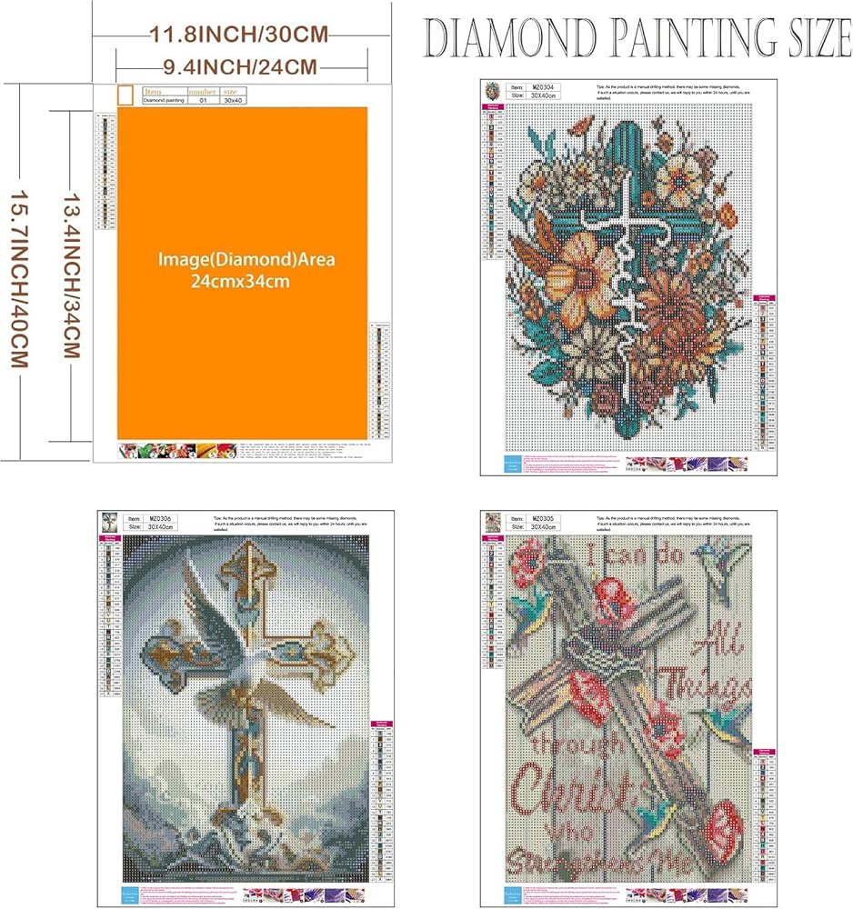 Diamond painting size and package: Including 3×high definition 12x16in painting canvas, 3×point diamond pen, 3×craft tray, 3×clay, 30×self-sealing bags. Don't worry about the lack of diamonds. We will add 30 percent to each color of diamond. Note: The frame is not included.