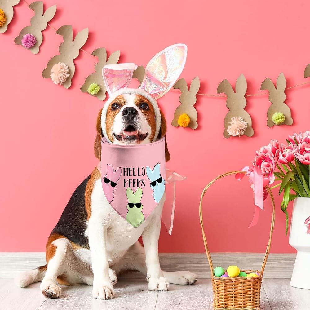 Easter Day Dog Bandanas: The triangle dog scarves are designed with shake your cotton tail pepes, your pets will become adorable and charming when wearing them on happy easter day.