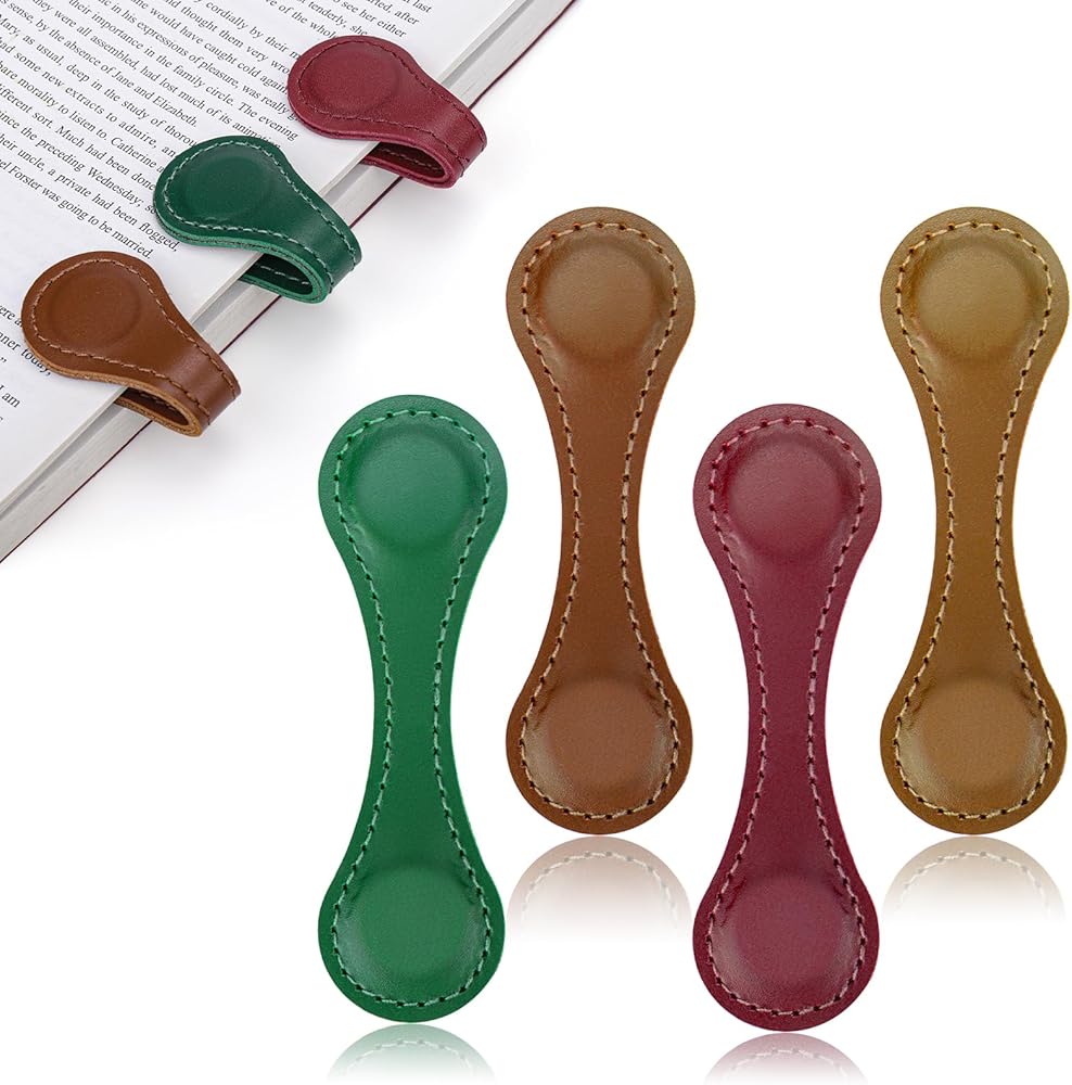 Mity rain 4PCS Magnetic Bookmarks, Magnetic Bookmarks Leather for Women, Double-Sided Vintage Book Mark Clip Gift for Book Lover Readers Men Women Teachers Students, Book Accessories