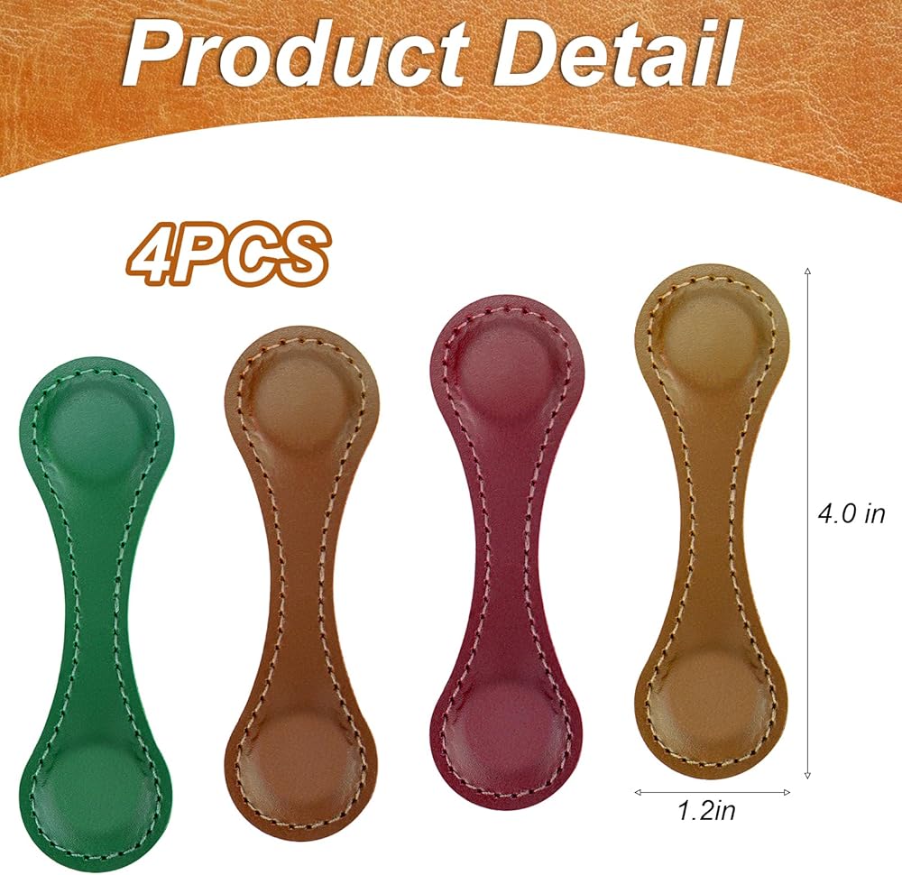 Package: Including 4pcs magnetic leather bookmark (red, green, orange, brown). This convenient bookmark can be used in textbooks, novels, diaries or magazines, also fixed for arranging files or drafts