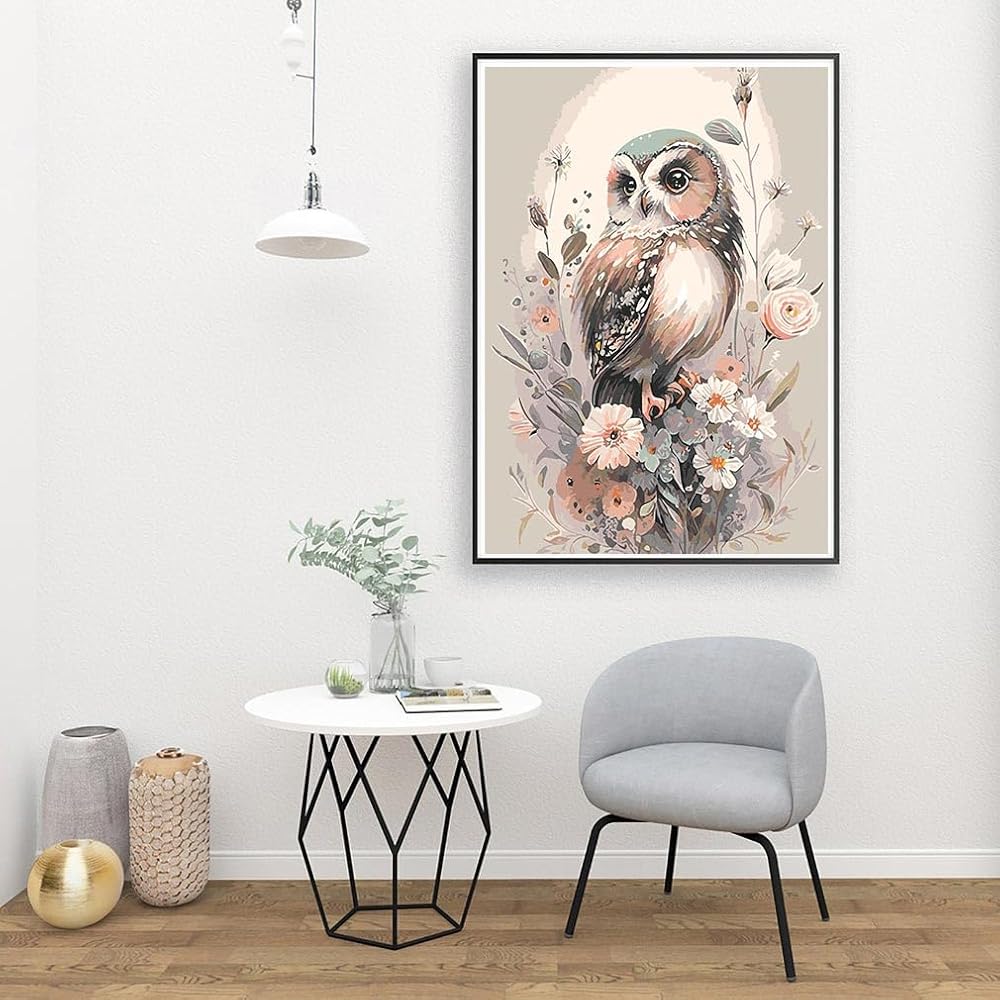 Owl Paint by Numbers Adult Kit,DIY Acrylic Painting Kits on Canvas,Flowers Oil Painting for Home Wall Decor 12x16inch