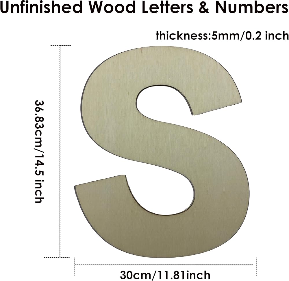 Unleash Your Creativity with 14.5" Unfinished Wood DIY Letters & Numbers - Perfect for Crafting, Painting, and Decorating - Ready for Your Personal Touch/Letter S