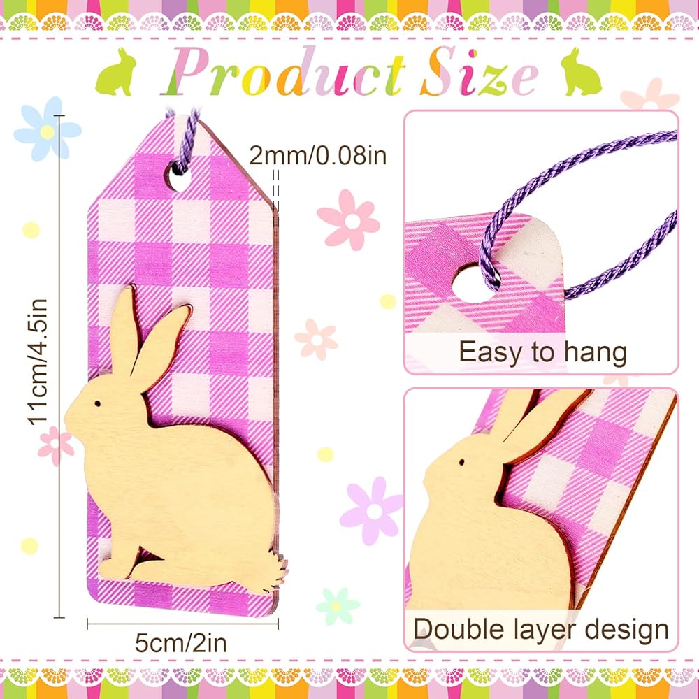 Our bunny Easter cutouts are made of quality wood in cute pink, green, blue, purple, yellow color, solid and sturdy, not easy to break and deform, can serve you for a long time.
