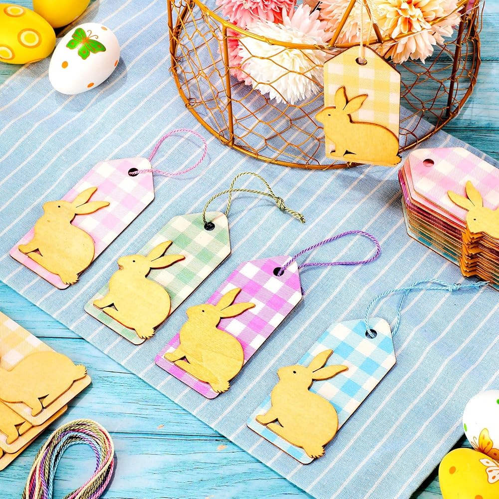 Each wooden bunny cutout measures approximately 6 x 9 cm/ 2.4 × 3.5 inches, and 2 mm/ 0.08 inch in thickness, a suitable size for you to use and store.