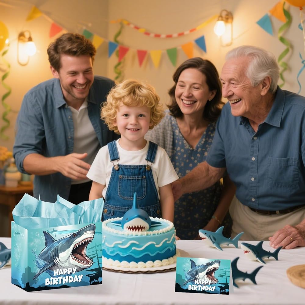 Large Birthday Gift Bag: western gift bag measures 11.8" W x 9.8" H x 5.3" D, can fully hold birthday gifts, such as mugs, books and so on; Birthday card measures 7.8" W x 5.9" H, there is plenty of space to express your care