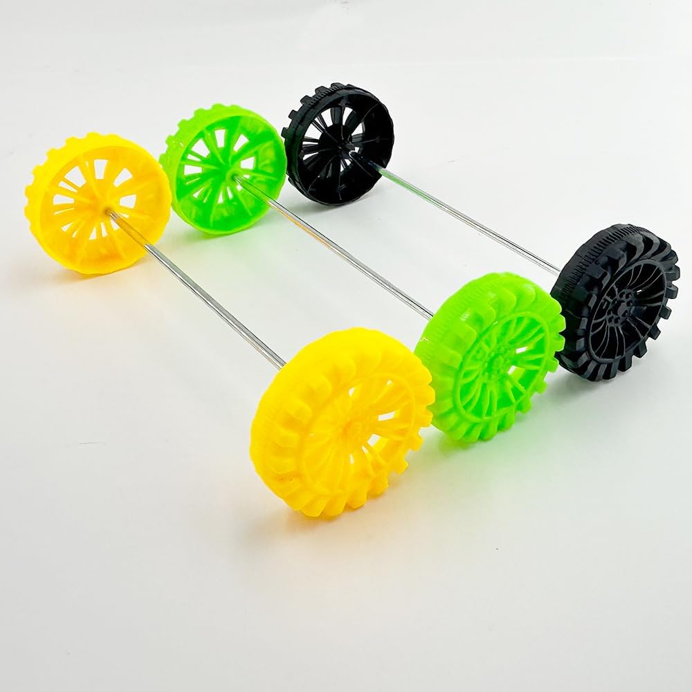 Application:30PCS Toy car plastic tire wheels with round metal shaft for diy model toy,rc car,truck building project,enjoy the fun of DIY crafts(NOTE:You may need to use a little force to connect the wheel to the shaft)
