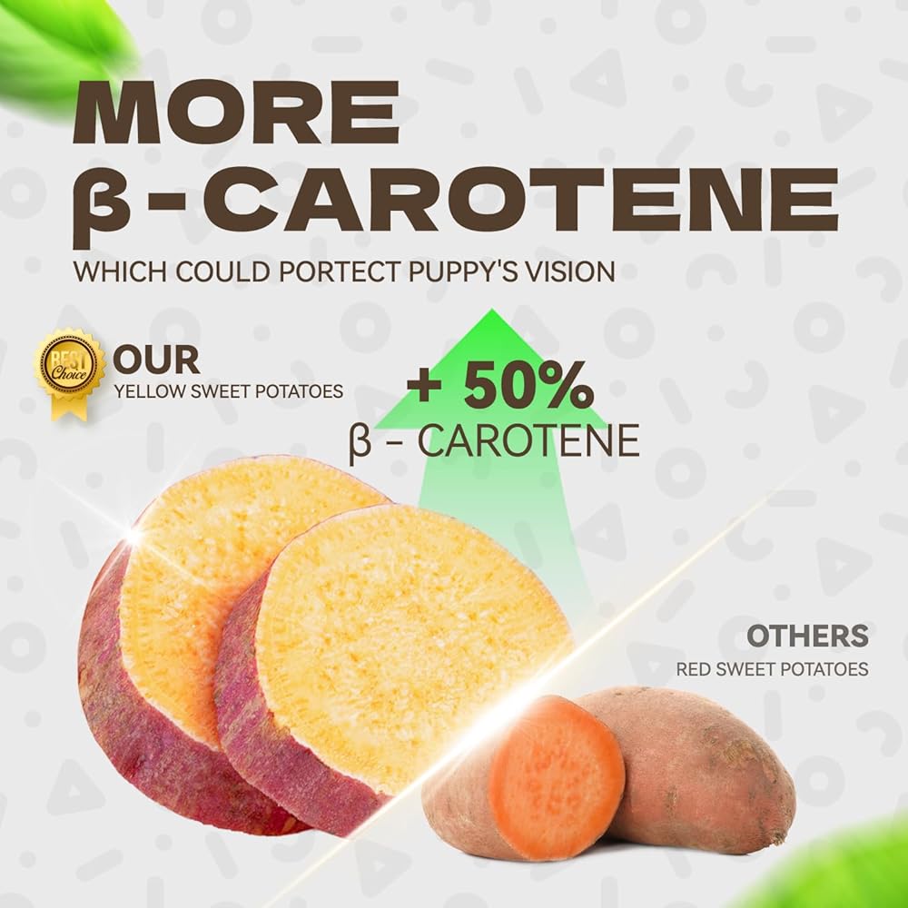 Nutrient-Rich & Digestive Support: Packed with fiber, vitamins, and minerals, sweet potato dog treats support healthy digestion, boost immunity, and contribute to your pet's overall well-being.