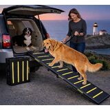 High-visibility reflective material aids in guiding your pet up and down the ramp