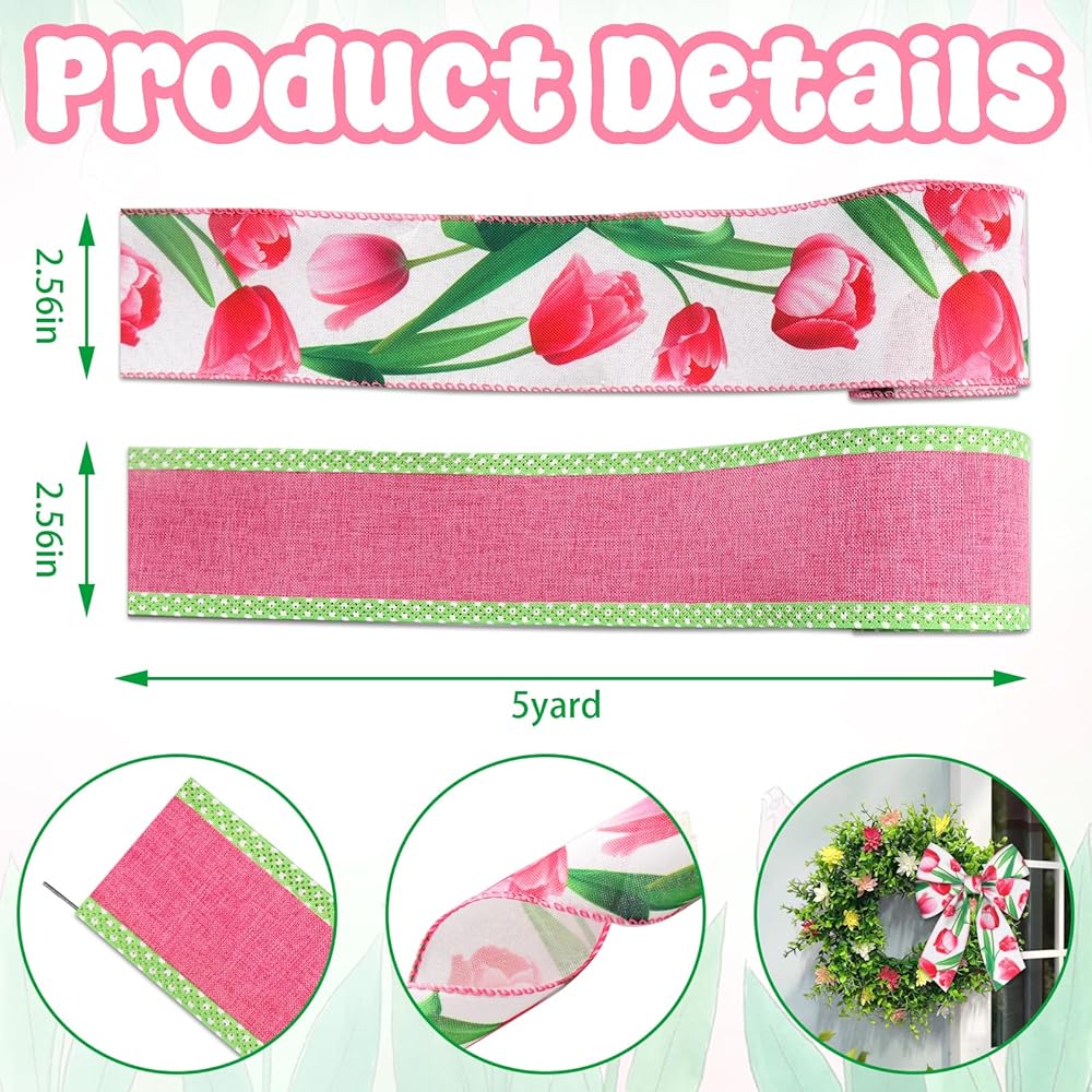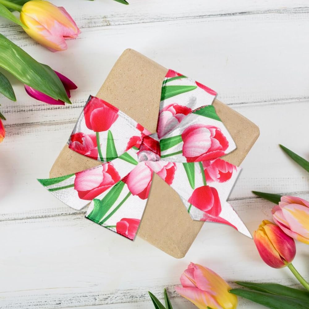 Floral Theme: This floral wired edge ribbons share the spring theme; They are covered in rose red tulip which can catch people's attention quickly; Besides, its surfaces are printed with flower which is very classic and nice