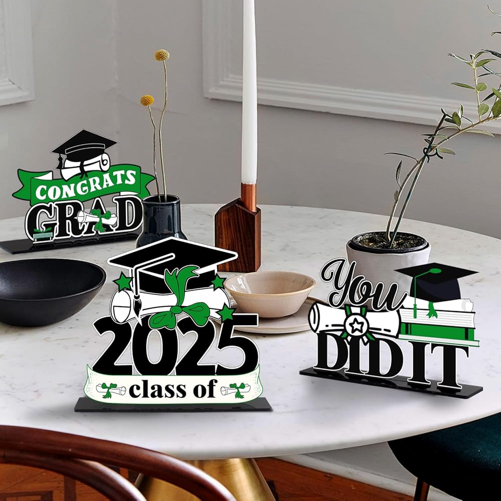 LINGTEER Class of 2025 Graduation Party Decorations - 3Pcs Congrats Grad 2025 School Graduation Acrylic Table Centerpieces Gift Stand Decorations - Green.