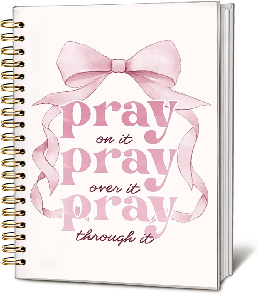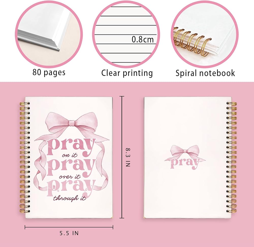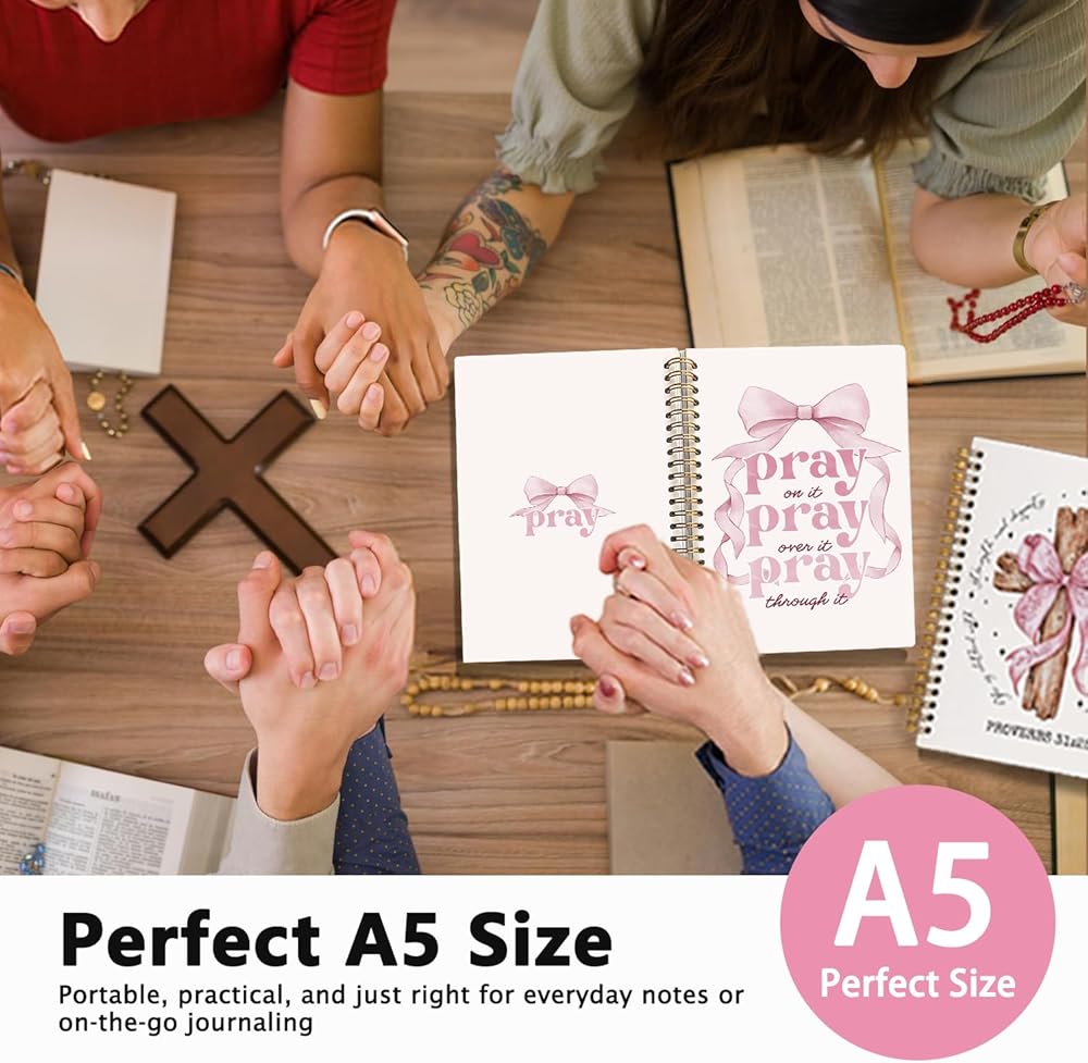 Pink Coquette Bow Spiral Bible Notebook for Note Taking,Cute Preppy School Supplies for Girls, Preppy Aesthetic Bible Study Journal for Women, Christian Hardcover Lined Notebook 5.5 x 8.3