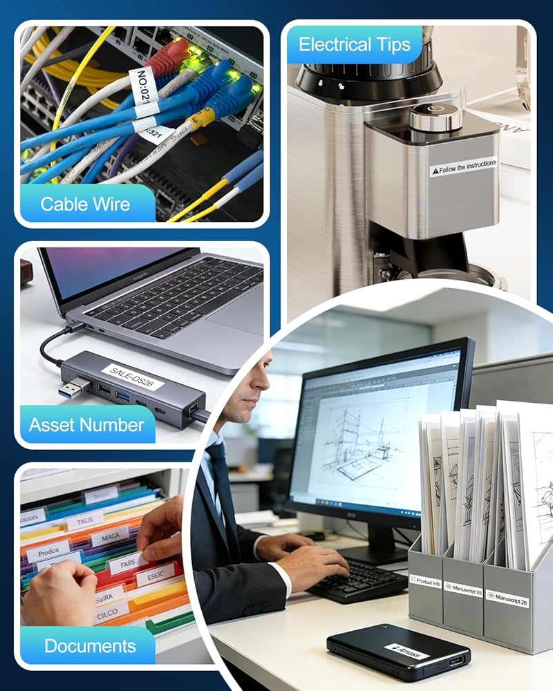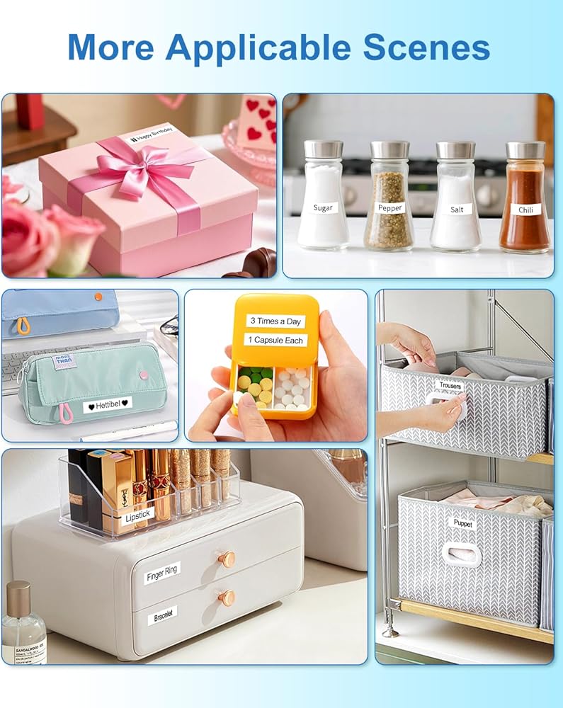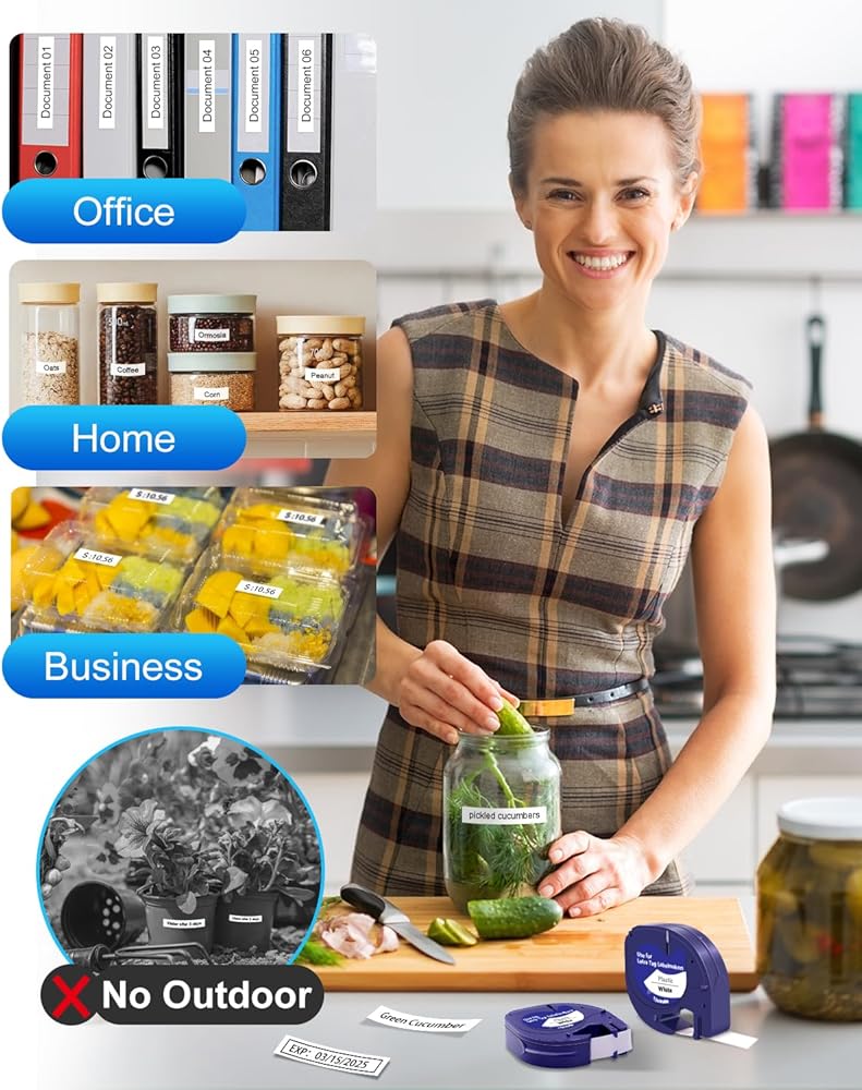 Wide Applications: The compatible with Dymo label maker paper refill tapes are widely used indoor, such as office files, lab chemical appliances, household bottles, warehouse items, medical instruments, etc.