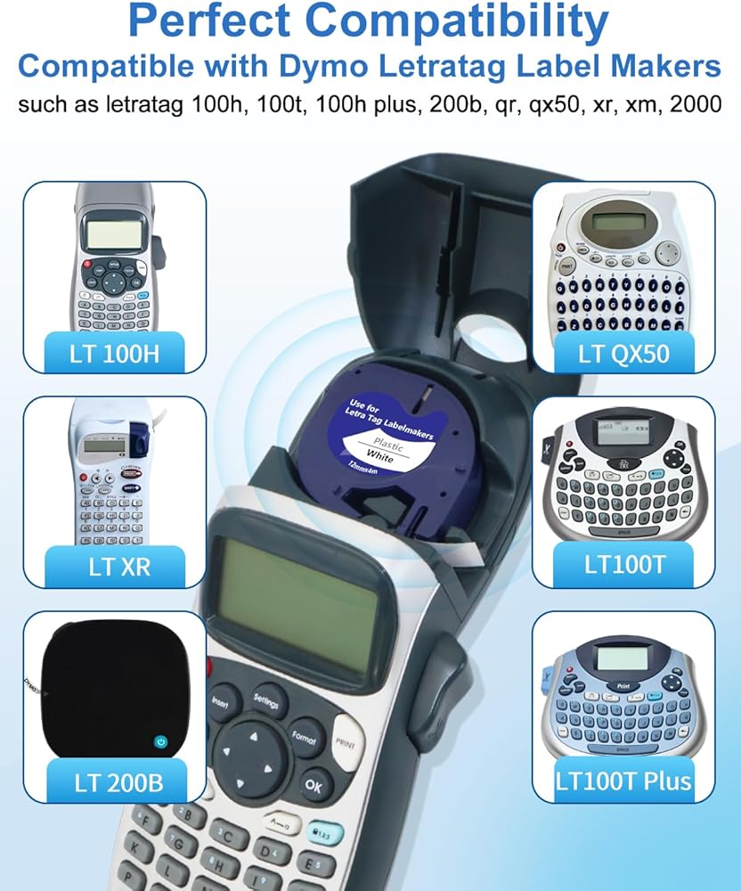 LT Paper Label Tape Compatible with Dymo LetraTag Label Makers: LT-100H, LT-100T Plus, QX50, LT-100T, LT-110T, LT-100H plus, 2000, XR, XM, QR, etc.