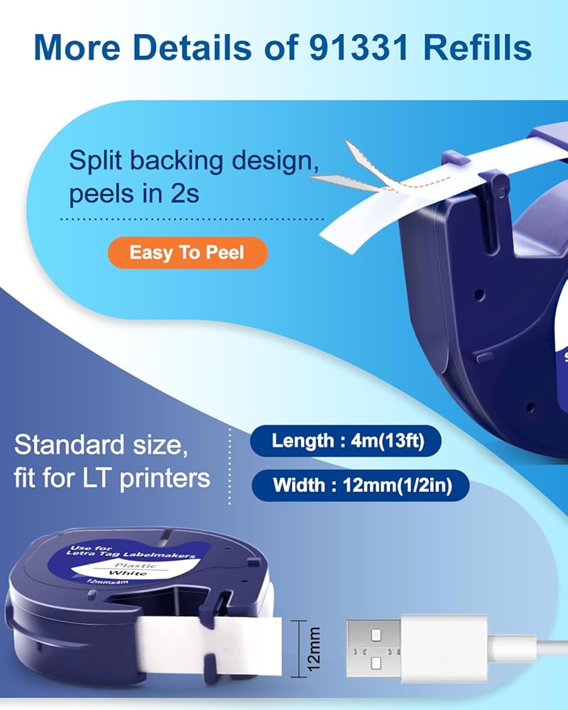 Easy-Peel: Compatible with Dymo letratag refills 91330 has a split-back design, is easy to peel and convenient to use. Note: Due to the particularity of the LT91330 tape, once pasted, it cannot be torn out for repeated use.