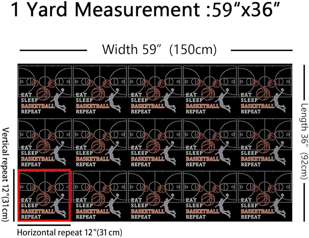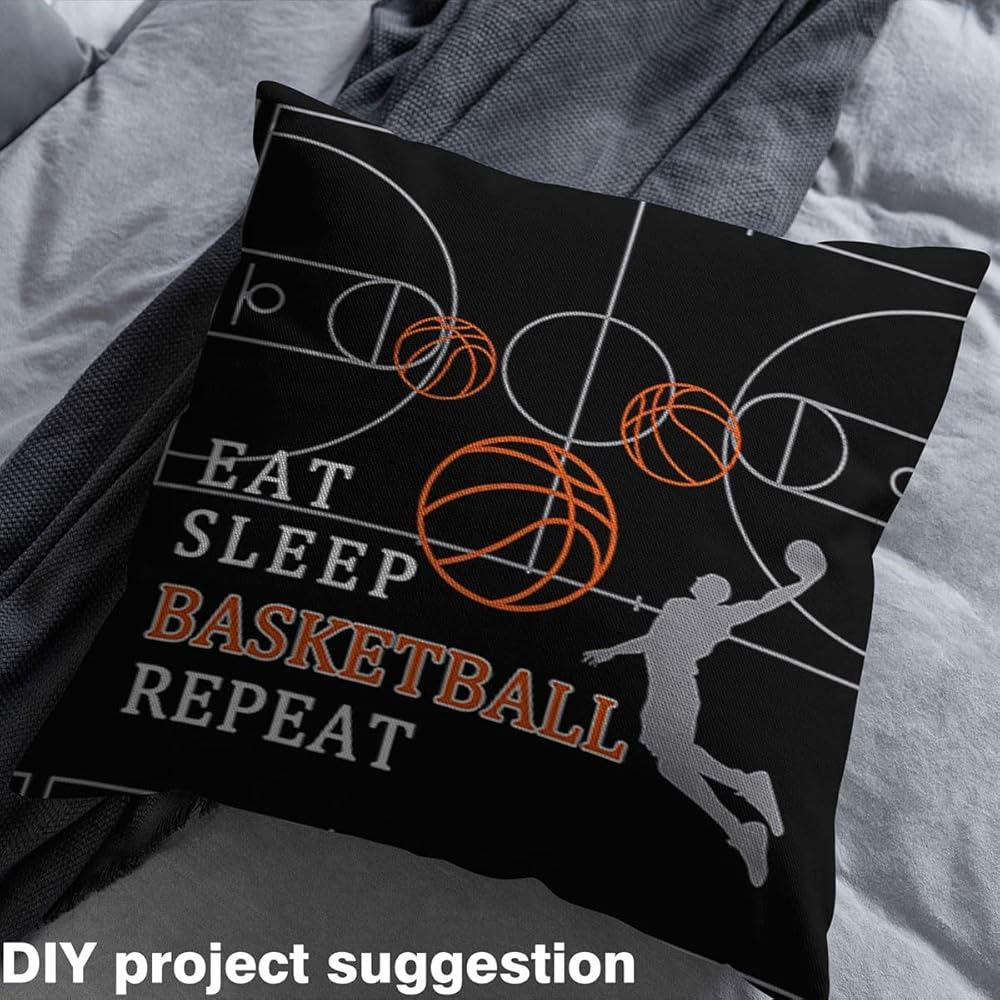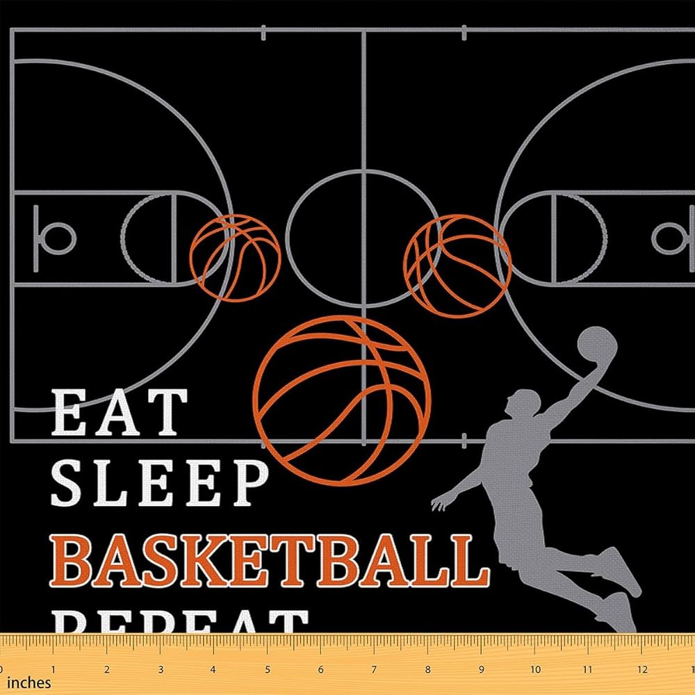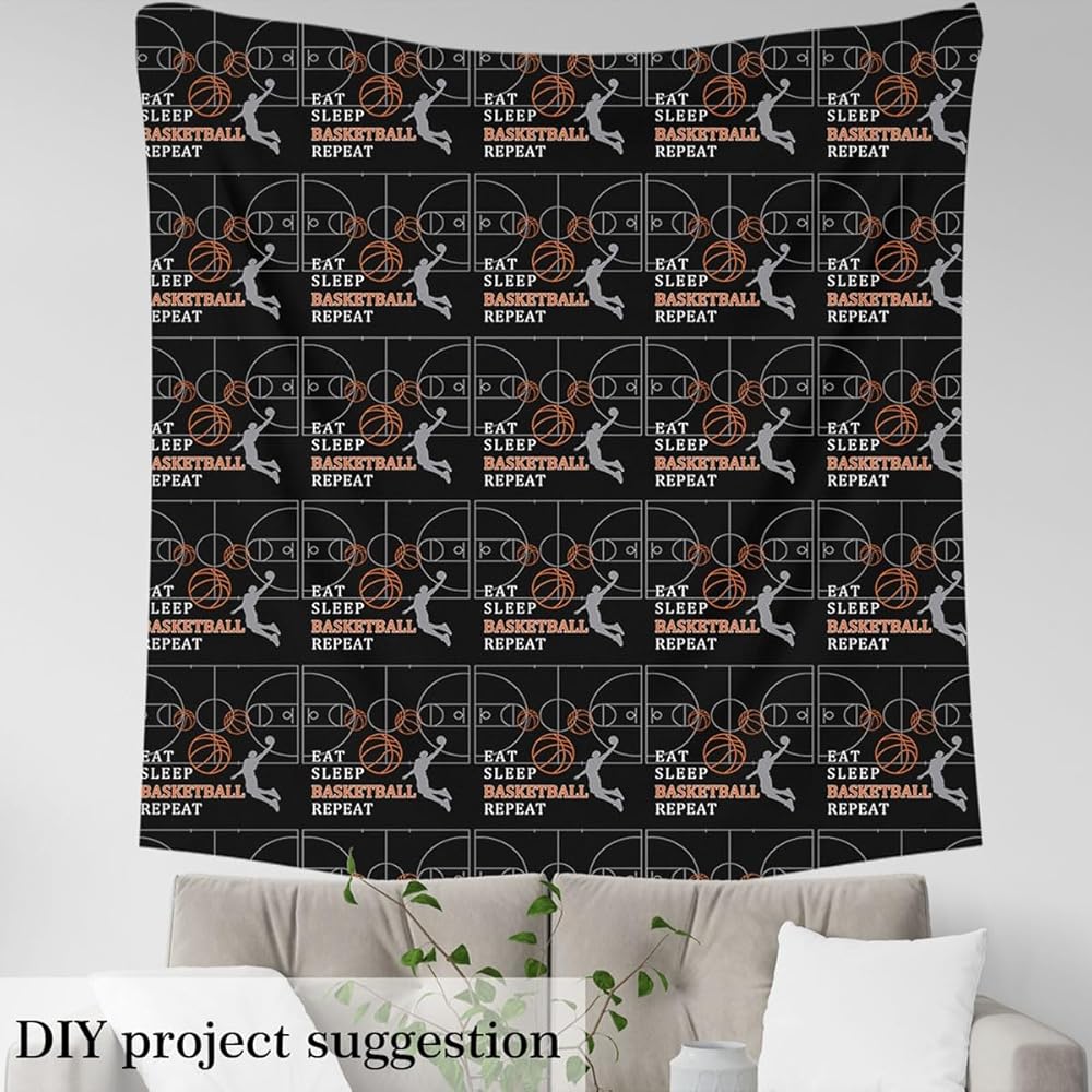 Eat Sleep Basketball Fabric by The Yard,Basketball Court Fabric for Chairs Sofa Sewing,Ball Sports Games Themed for Upholstery and Home DIY Projects Waterproof,1 Yard,36" L x 59" W