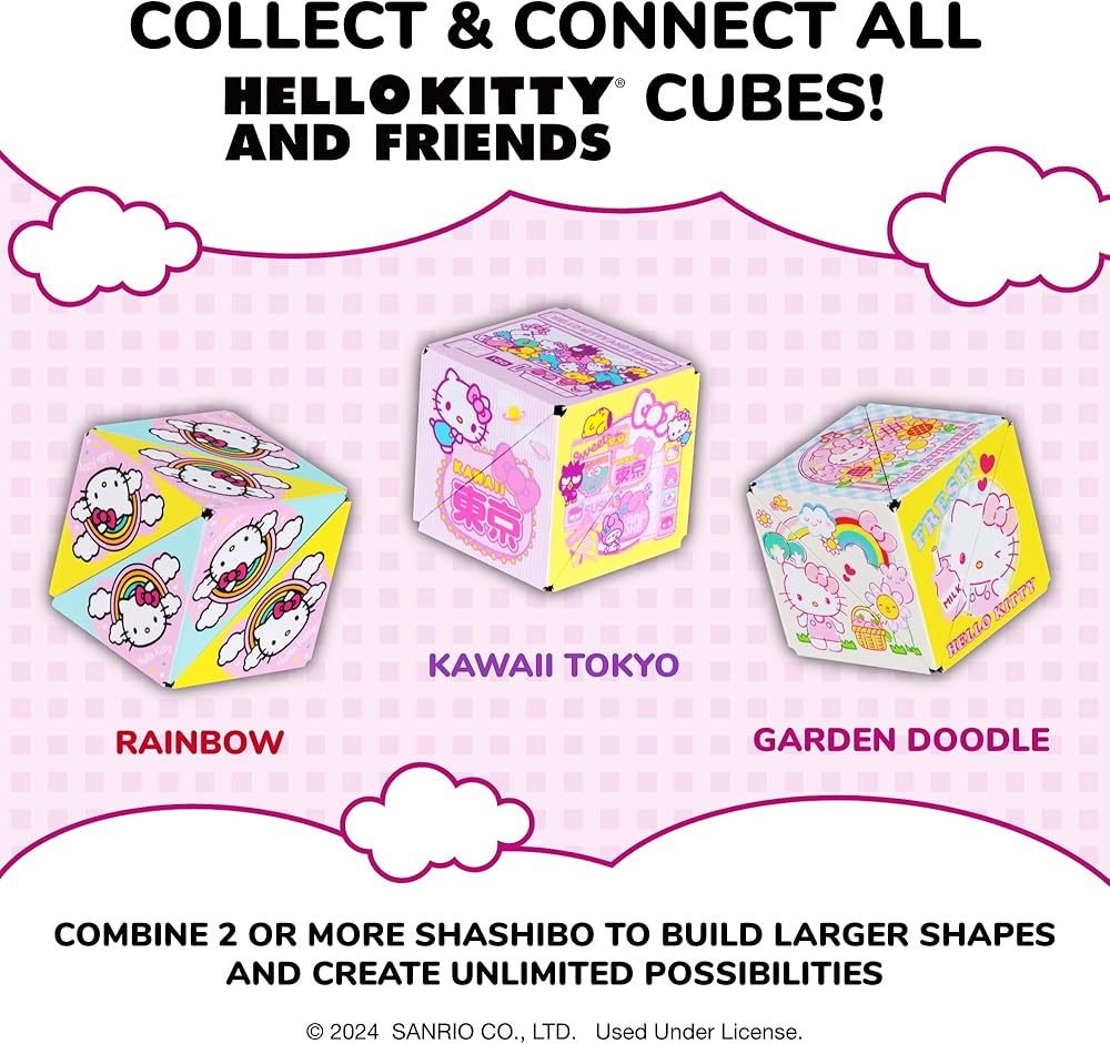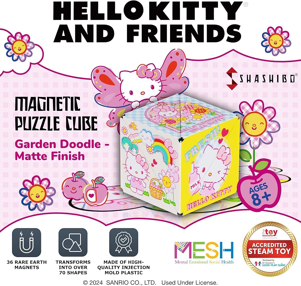 Embrace the World of Hello Kitty & Friends - Are you ready for the world's best friends in our SHASHIBO puzzle toys series? Meet our new Hello Kitty magnetic cubes in 3 colorful designs. Enjoy discovering over 70 unique shapes while stimulating your imagination.