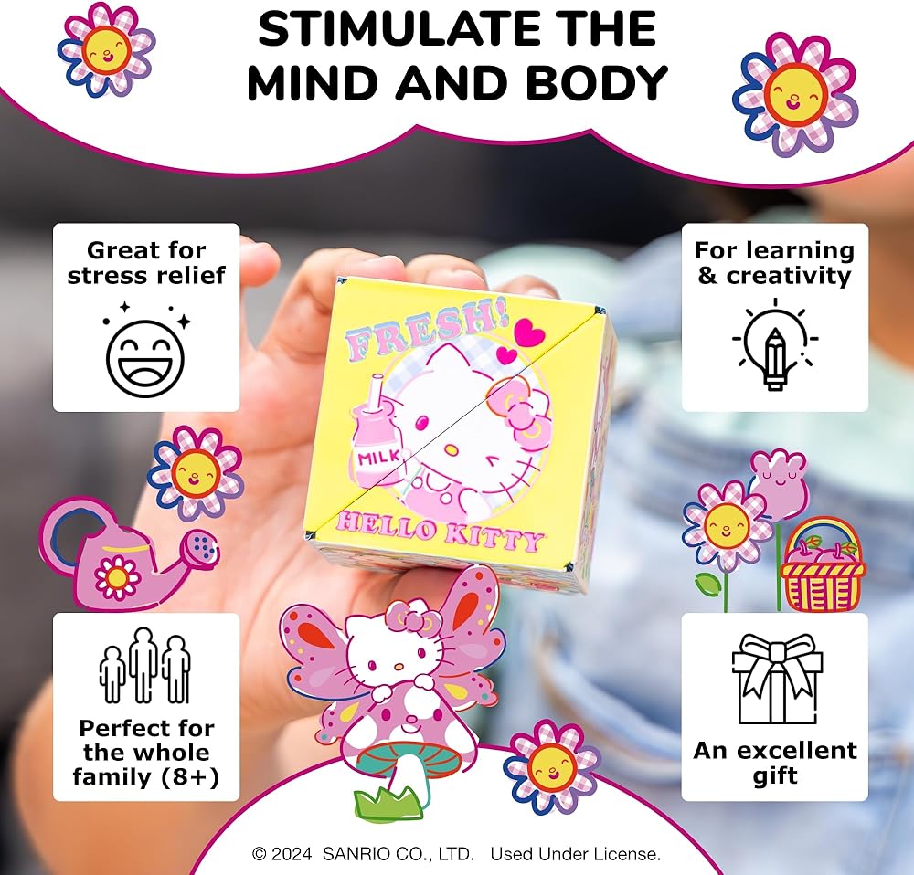 Designed With Premium Materials - Shashibo means award-winning quality. The innovative design of the Hello Kitty fidget cube toy is the perfect fit for every palm. It is built with 100% recyclable plastic, contains 36 rare earth magnets, and a tear-proof, matte surface. All recyclable at the end of life.