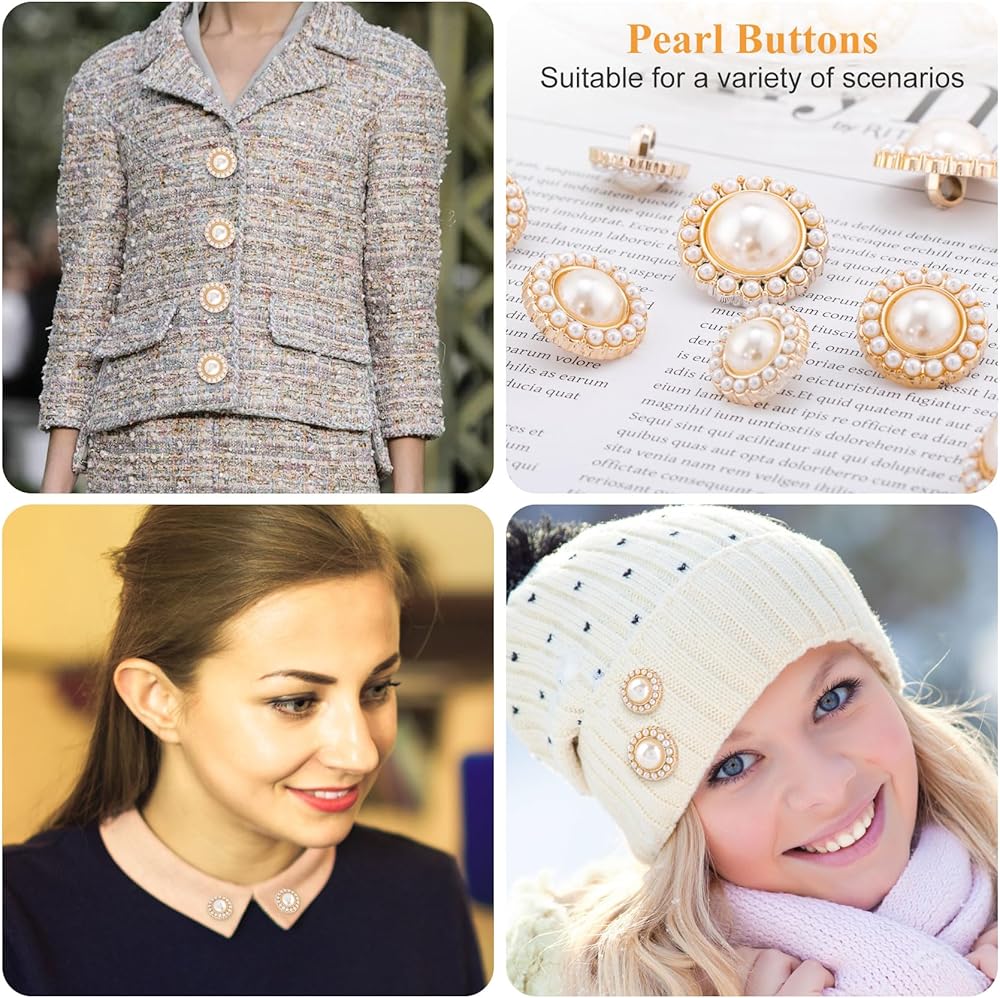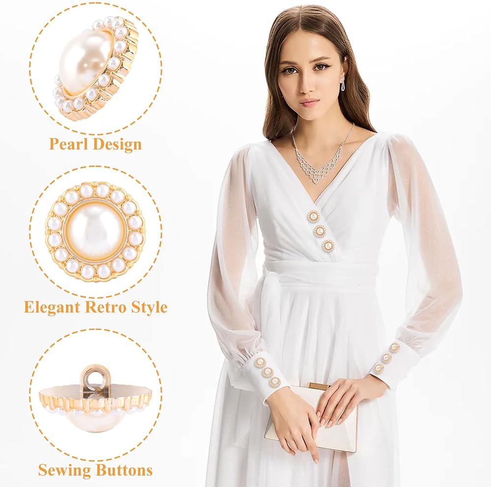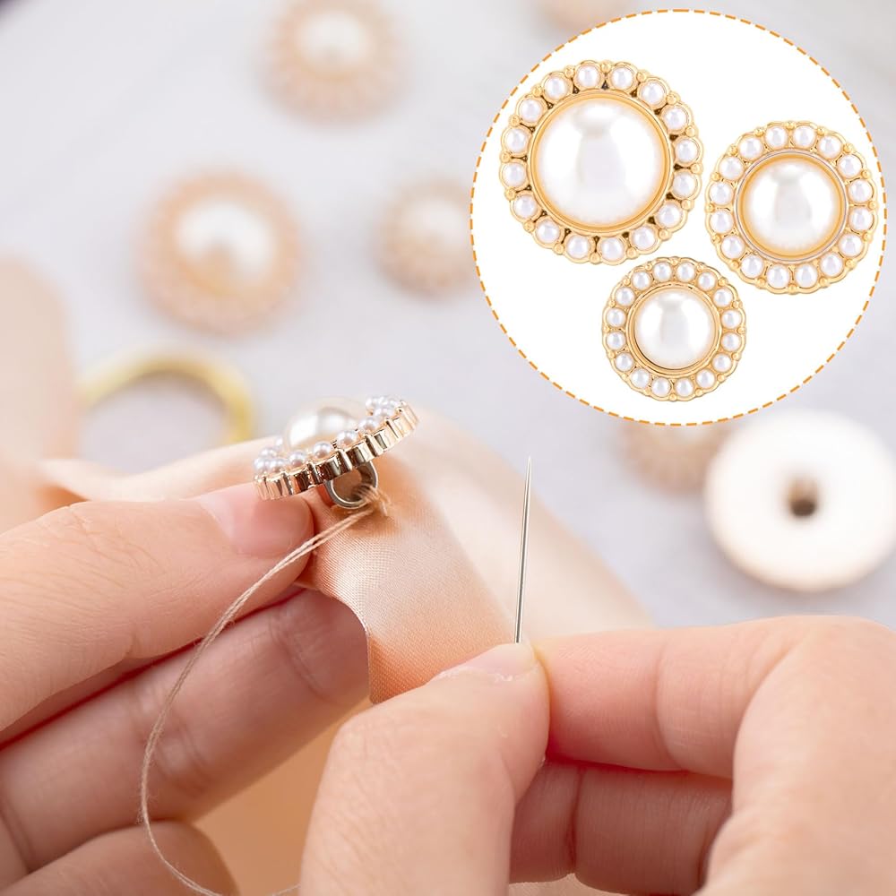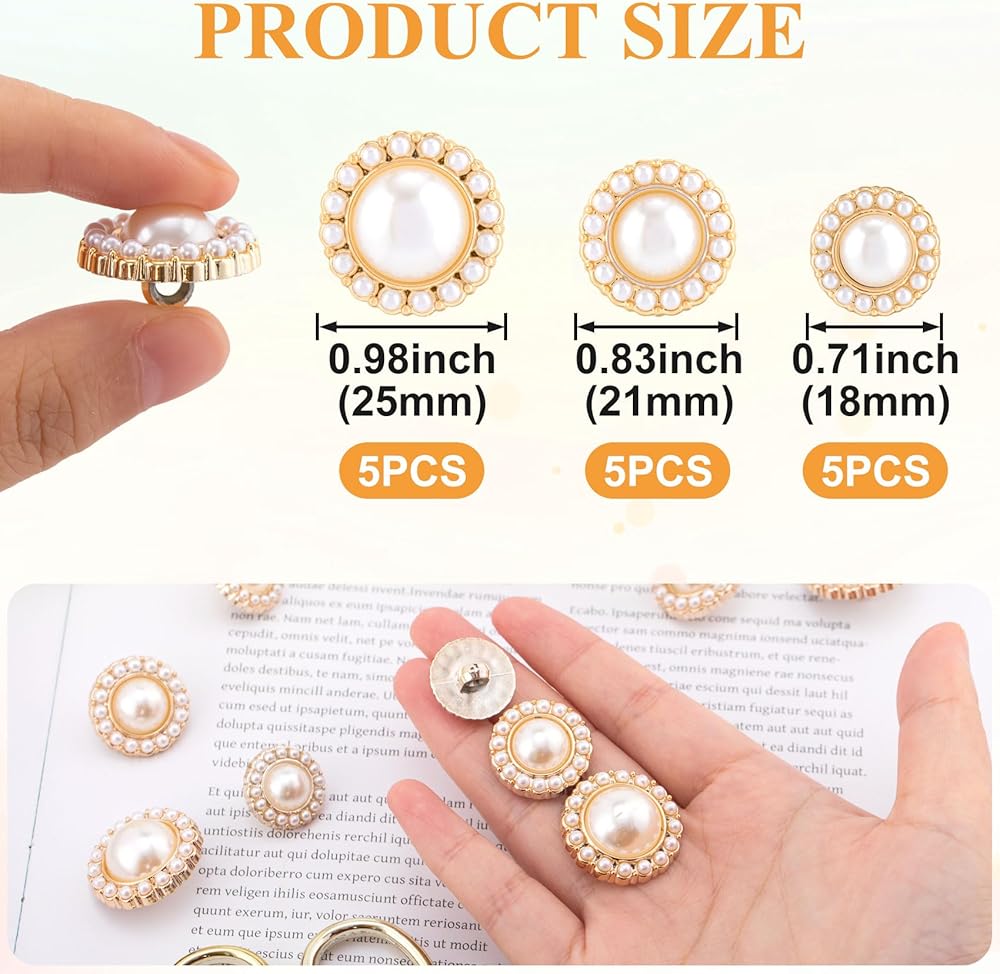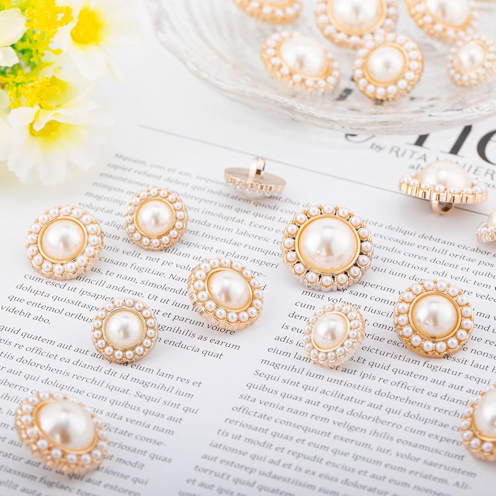 Package Included: You will get 15 pcs vintage pearl buttons in different sizes, these buttons are embellished with a ring of pearls around them, the elegant look adds more charm to you