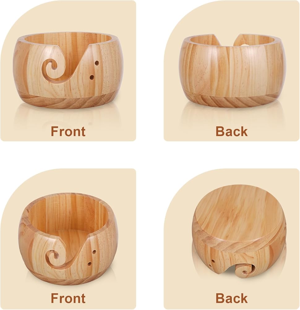 Best Raw Wood Material - The entire surface of wooden yarn Bowls for crocheting is expertly smoothed with a high gloss finish applied to the entire surface including the swirls and holes to prevent yarn from catching