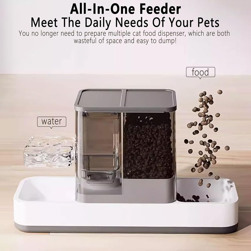 [Practical 2-in-1] Our automatic cat feeder features a 2-in-1 design, consisting of a 1-gallon water dispenser and a 1.5-gallon food distributor, making it a great helper for feeding cats, small dogs, and other pets. Whether you're at home or not, you can ensure that your furry friends always have fresh food and water.