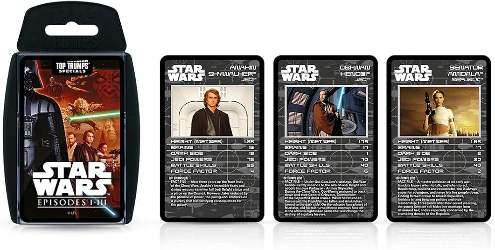 Immerse yourself in the Star Wars Prequel Trilogy card game that blends strategy, skill, and excitement, perfect for kids and families. Easy to learn, it provides engaging gameplay suitable for ages 6 and up. Players draw from a deck filled with iconic characters and vehicles, competing by comparing attributes to win each round.
