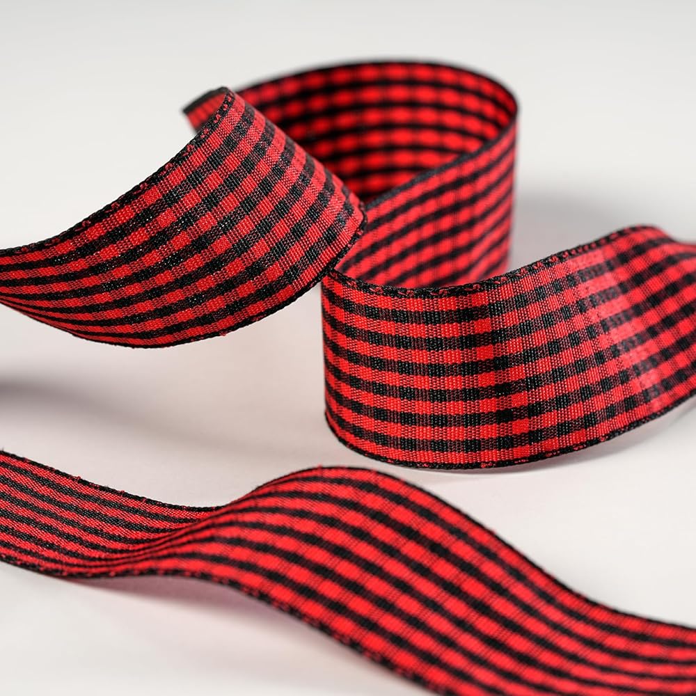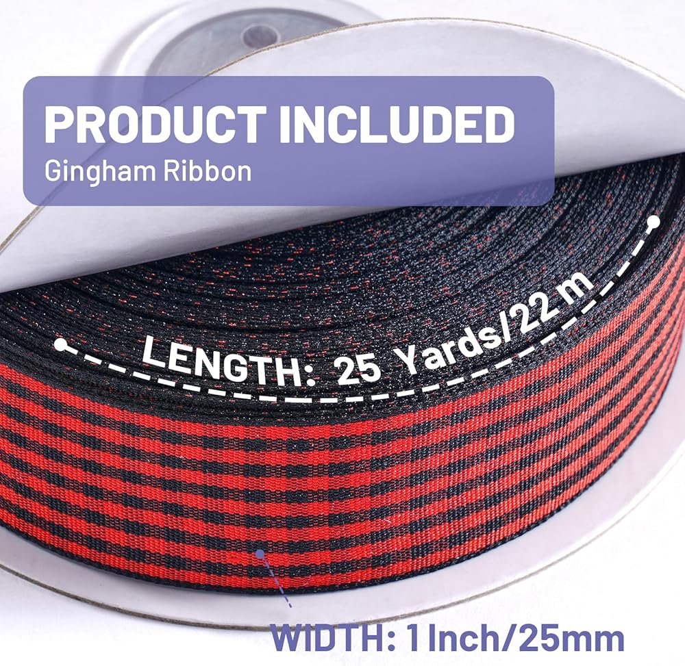 Black Gingham Ribbon 1 inch, 25 Yards Roll Black and Red Buffalo Plaid Ribbon Christmas Check Ribbon for Gift Wrapping Xmas Wreath DIY Crafts and Home Decor