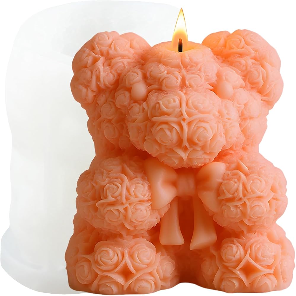 【Rose Bear Candle Mold】:You will receive 1Pcs Rose Bear Candle Silicone Mold. Rose Bear Silicone Candle Mold Can Meet Your DIY Crafting Needs. The size of each mold is different,Please refer to the picture for the specific size. These Rose Bear Mold are compatible with a wide range of hard candle waxes, such as paraffin wax, hard gel wax, beeswax, or soy wax/beeswax blends. Allowing you to effortlessly craft stunning and lifelike Rose Bear.