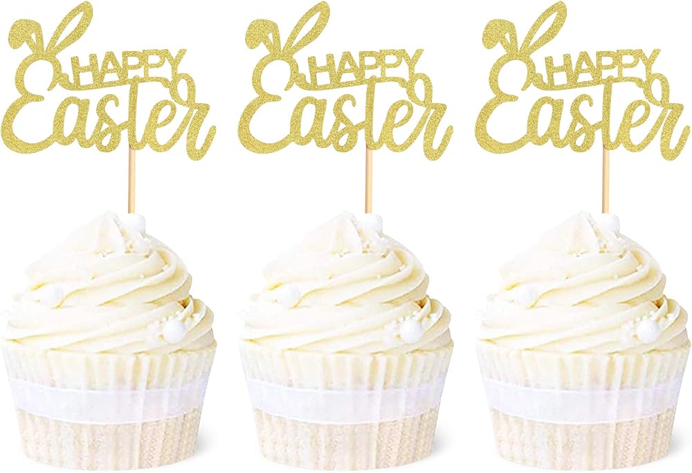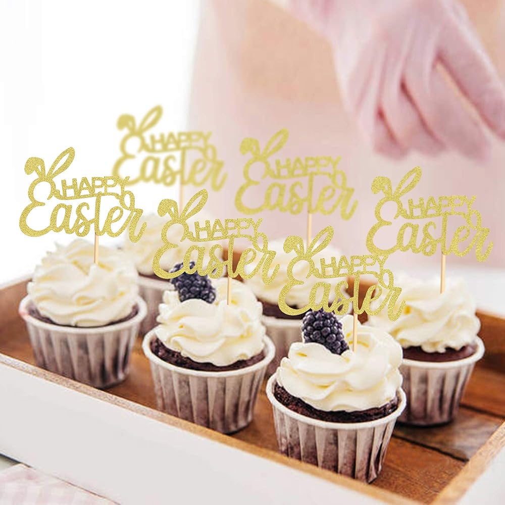 Ercadio 24 Pack Easter Bunny Ear Cupcake Toppers,Glitter Rabbit Ears Cupcake Picks, Easter Day Cake Toppers for Easter Theme Spring Birthday Baby Shower Party Supplies