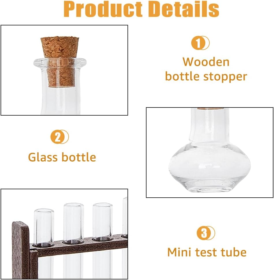 Material: These mini home accessories are made of stable material, the test tube model and glass bottle are made of delicate glass, the stand is made of smooth wood.