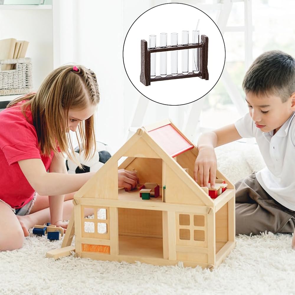 Dollhouse Mini Glass Test Tube Micro Landscape Ornaments Test Tube Dollhouse Experiment Ornament Miniature Glass Tube Tiny Wood Test Tube Rack for Dollhouse Decor