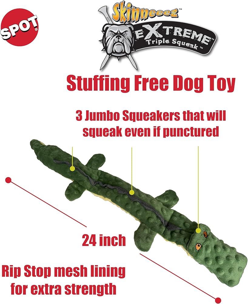 SPOT Skinneeez Extreme Triple Squeak Crocodile - Durable, Stuffing-Free Dog Toy with Rip-Stop Mesh & 3 Jumbo Squeakers, For Aggressive Chewers - Perfect for Medium to Large Dogs & Puppies, 24 inch