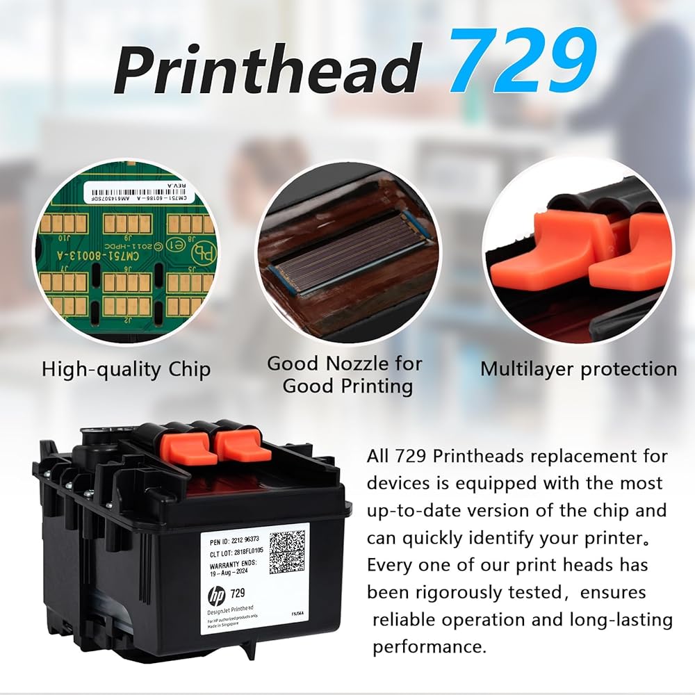 Built-in intelligent Chip:All 729 Printheads replacement for devices is equipped with the most up-to-date version of the chip and can quickly identify your printer。 Every one of our print heads has been rigorously tested,ensures reliable operation and long-lasting performance.
