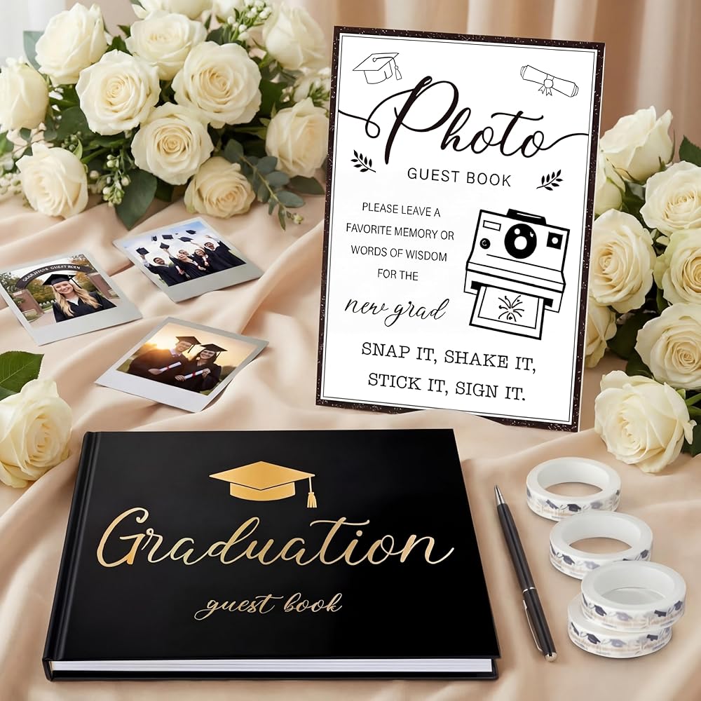 Use the message book to gather memorable messages from friends and family or to compile your favorite graduation photos. The wooden sign can be placed on shelves, desks, or hung on walls, while the tapes add brilliance to your decorations. It's more than a bundle. It's the key to unlocking a memorable graduation experience.