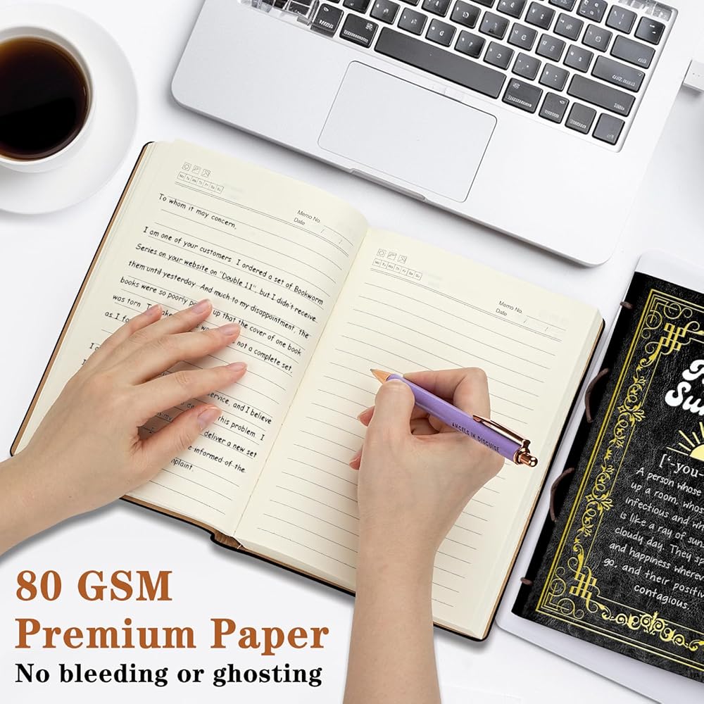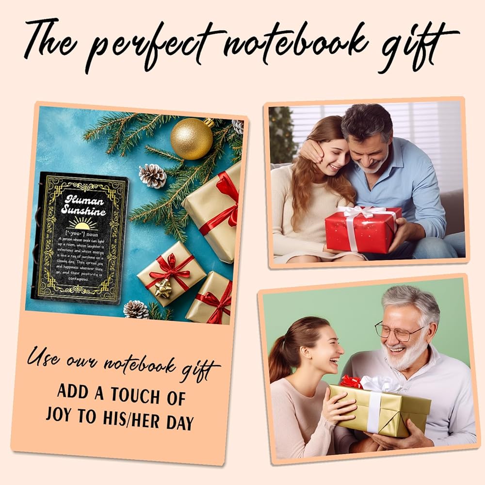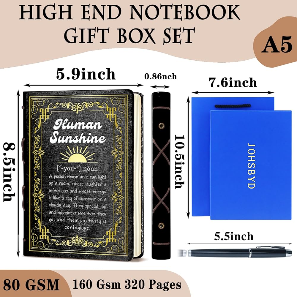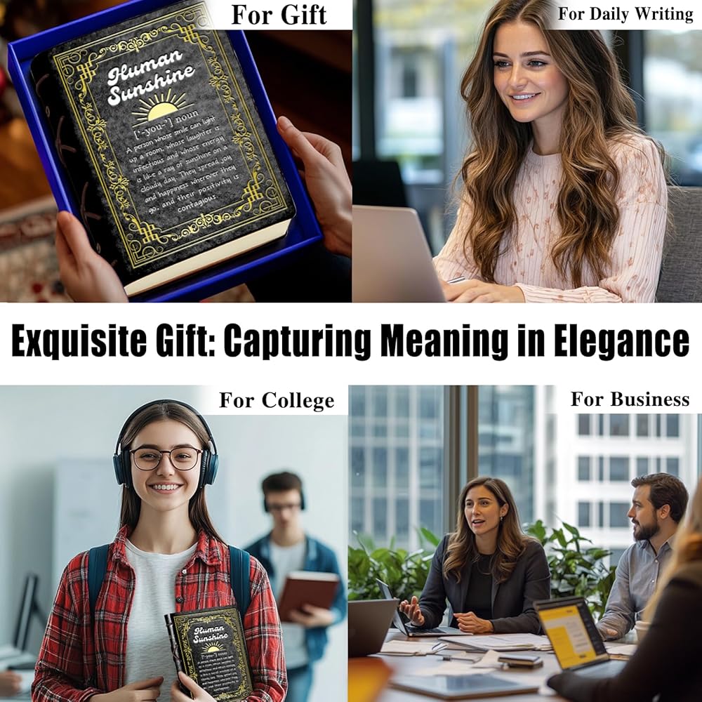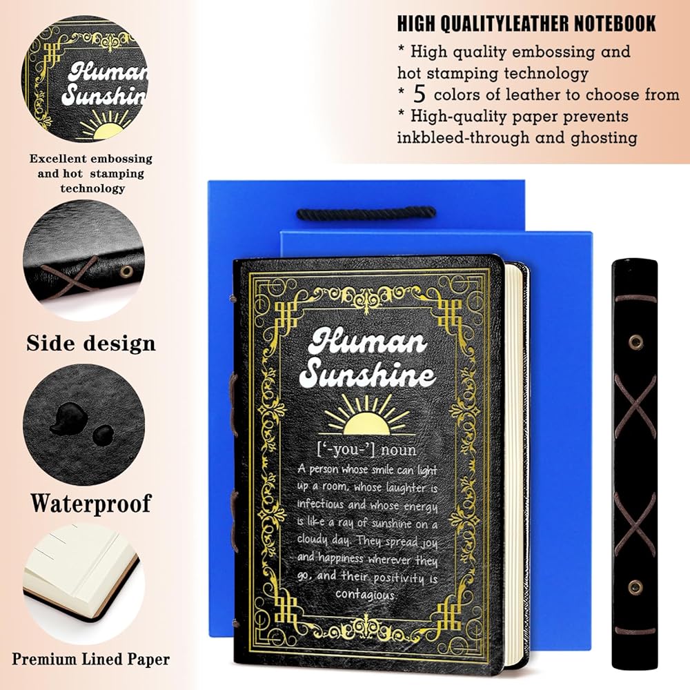 Black A5 Human Sunshine Definition Gift Birthday Gifts for Women Men Faux Leather Vintage Notebook Inspirational Gifts for Friends Coworker Sister Hardcover Executive Notebook,320 Pages Thick Ruled Paper With Pen,Sunshine Gift (Human Sunshine Black)