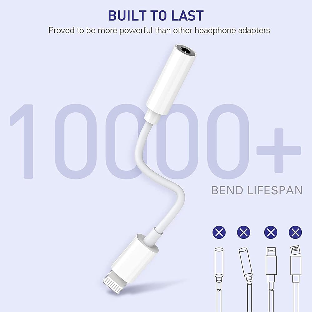 【Wide Compatibility】This iphone adapter for headphone jack works with all devices that have a lightning connector with IOS 10.3 or later, The 3.5mm to lightning adapter compatible with iPhone 13/ 13 Pro/ 13 Pro Max/ 13 Mini, iPhone 12/ 12 Pro/ 12 Pro Max/ 12 Mini, iPhone 11/ 11 Pro/ 11 Pro Max/SE 2020, iPhone XS/ XS Max/ XR/ X, iPhone 8/ 8 Plus/ 7/ 7 Plus/iPhone 6s/ 6s Plus.