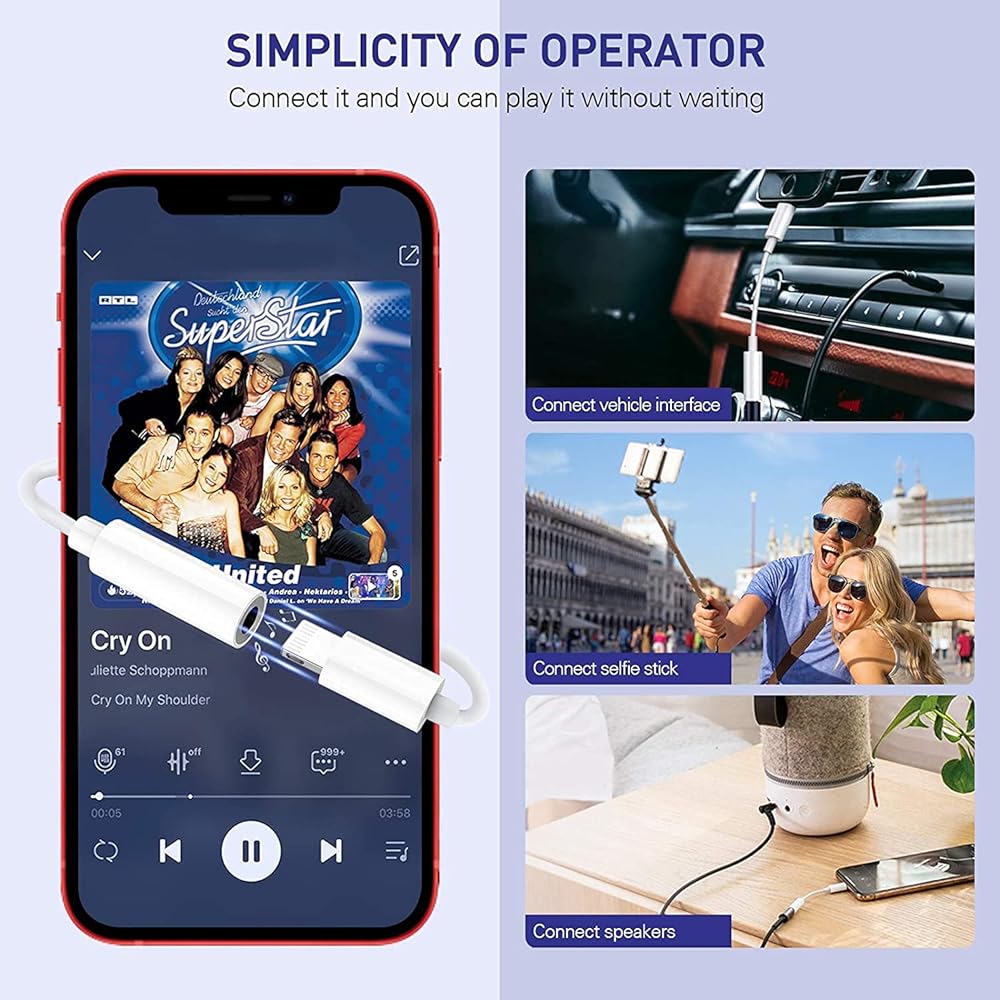 【Plug and Play】No need for any installation, just plug in and start listening. Just plug this lighting to 3.5mm in your iPhone and enjoy your music or movie with car / home stereo and original headphones in any scene such as trip,gym,office and other daily life-sytle.