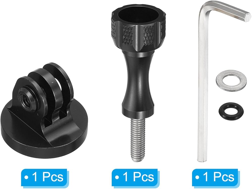 Instruction: The tripod screw adapter is easy to install, simply attach it to your action camera using the thumbscrew and then attach it to your tripod. Its 1/4" thread allows for a universal mounting point, providing you with the ultimate flexibility to customize your setup to suit your specific needs.