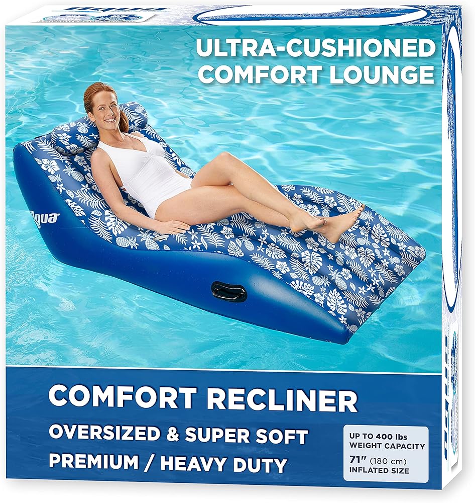 Heavy duty pool recliner: Outstanding buoyancy and stability when inflated; made from material 40% thicker than most pool floats; weight capacity: up to 500 pounds